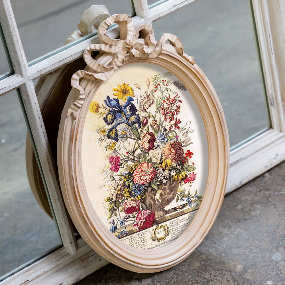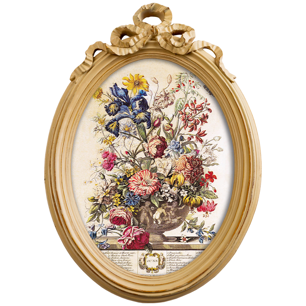 Классический бежевый цвет свободно гармонирует с любым интерьерным окружением. Овальные рамы идеально рифмуются с зеркалами и стульями-«медальонами», широкий выбор которых Вы найдете и в нашем каталоге.