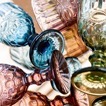 Фужеры тяжёлые, праздничные, красиво переливаются всеми гранями на свету! У бокала эффектная форма кубка и широкая ножка, которую очень удобно держать в руке.