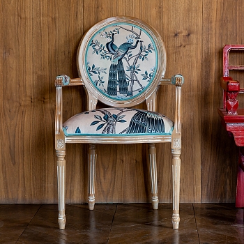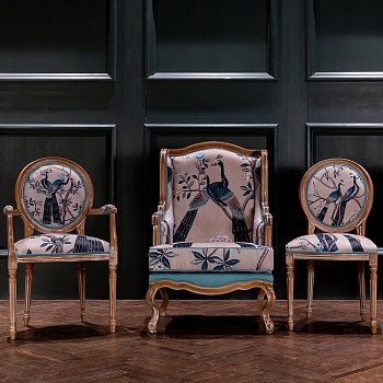 Картинами с павлинами, нарисованными художниками XIX века, мебельная индустрия уже не ограничивается. Она метит в мир высокого мебельного искусства. Полукресло «Императорский павлин» - универсальное украшение гостиной и детской комнат, спальни и столовой, кабинета и холла.