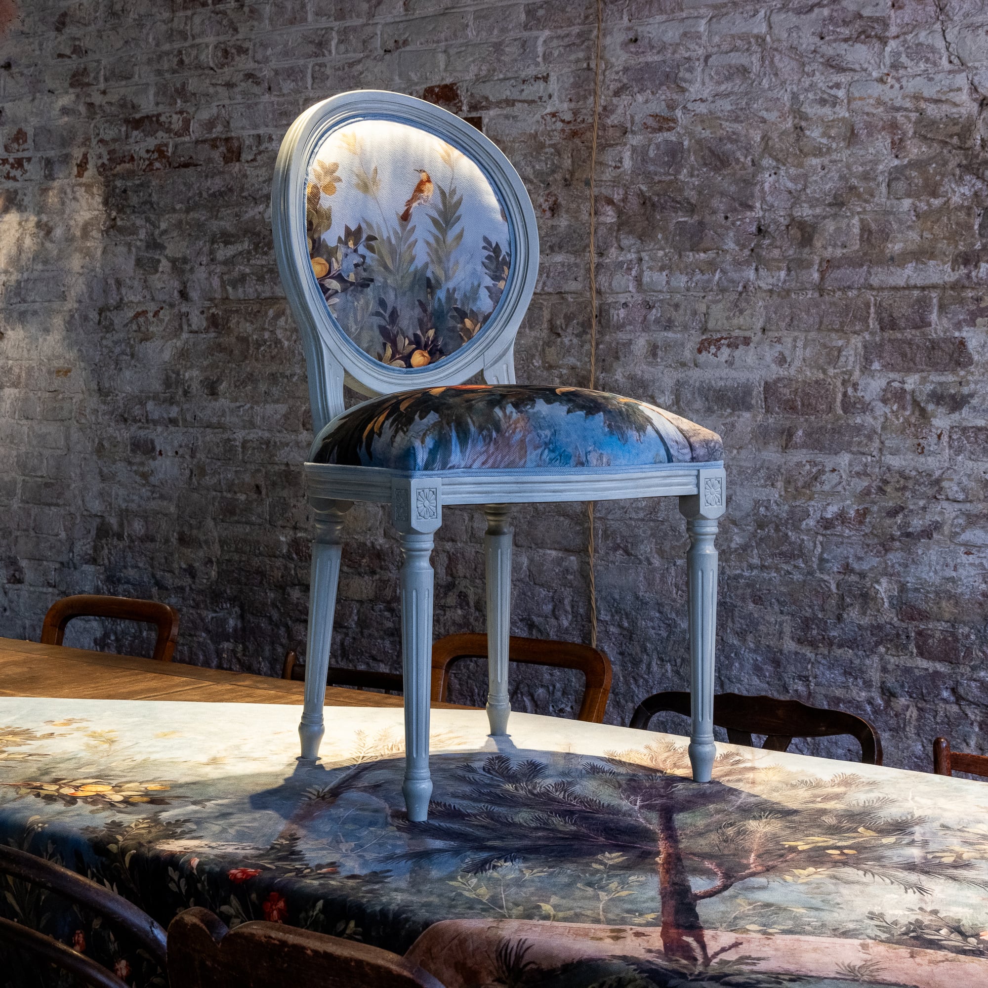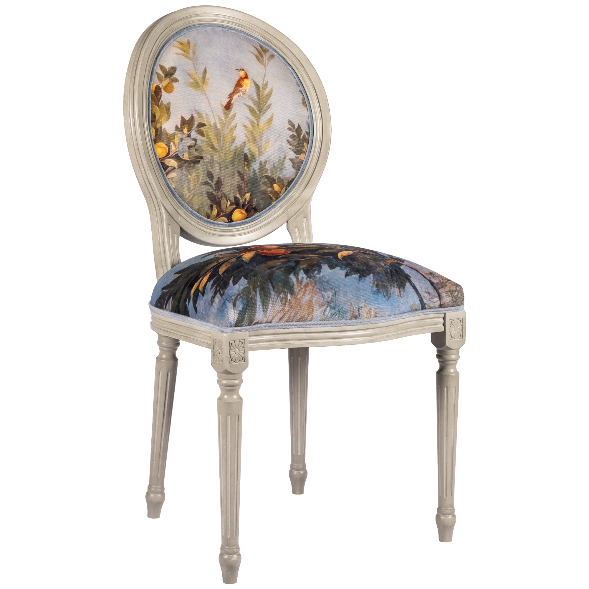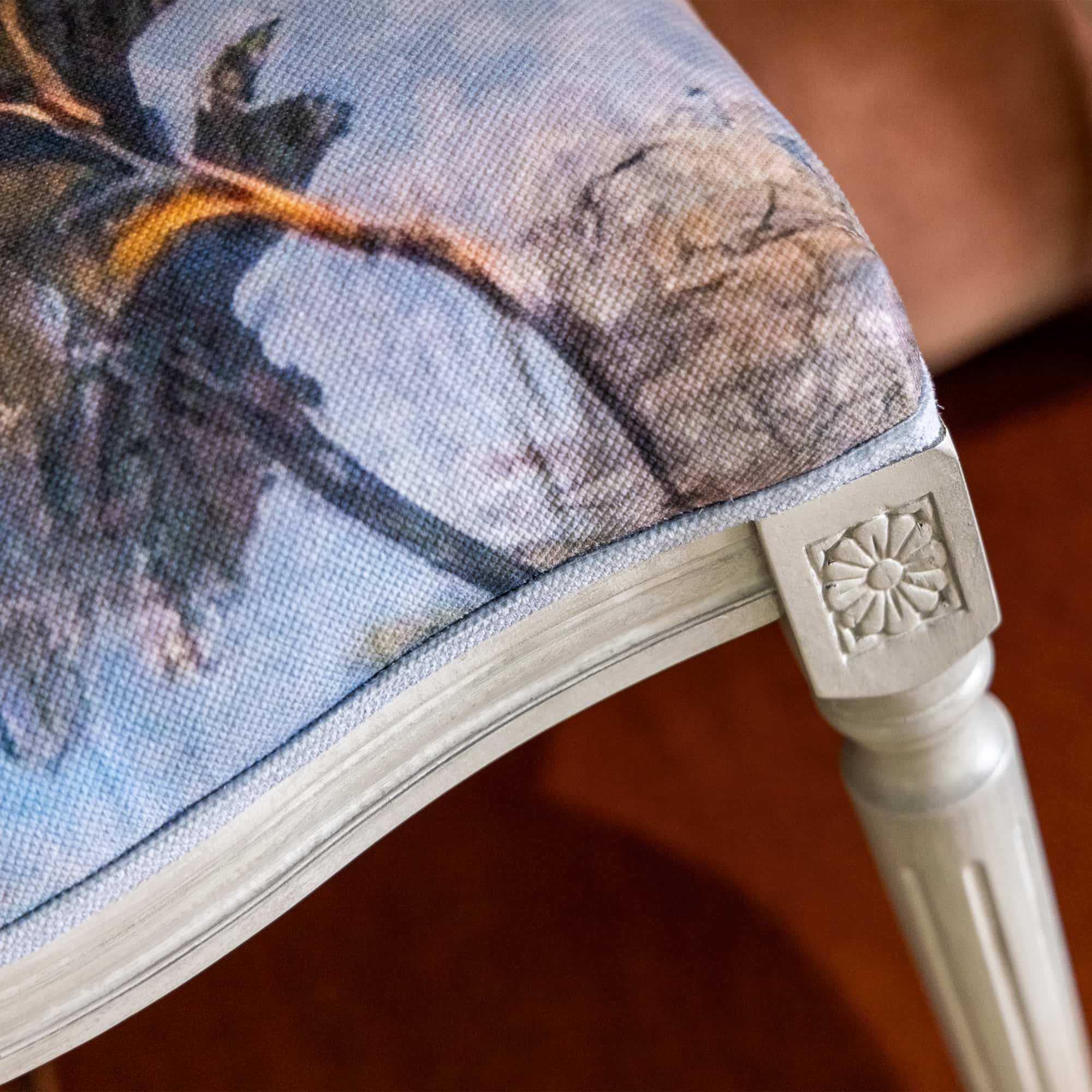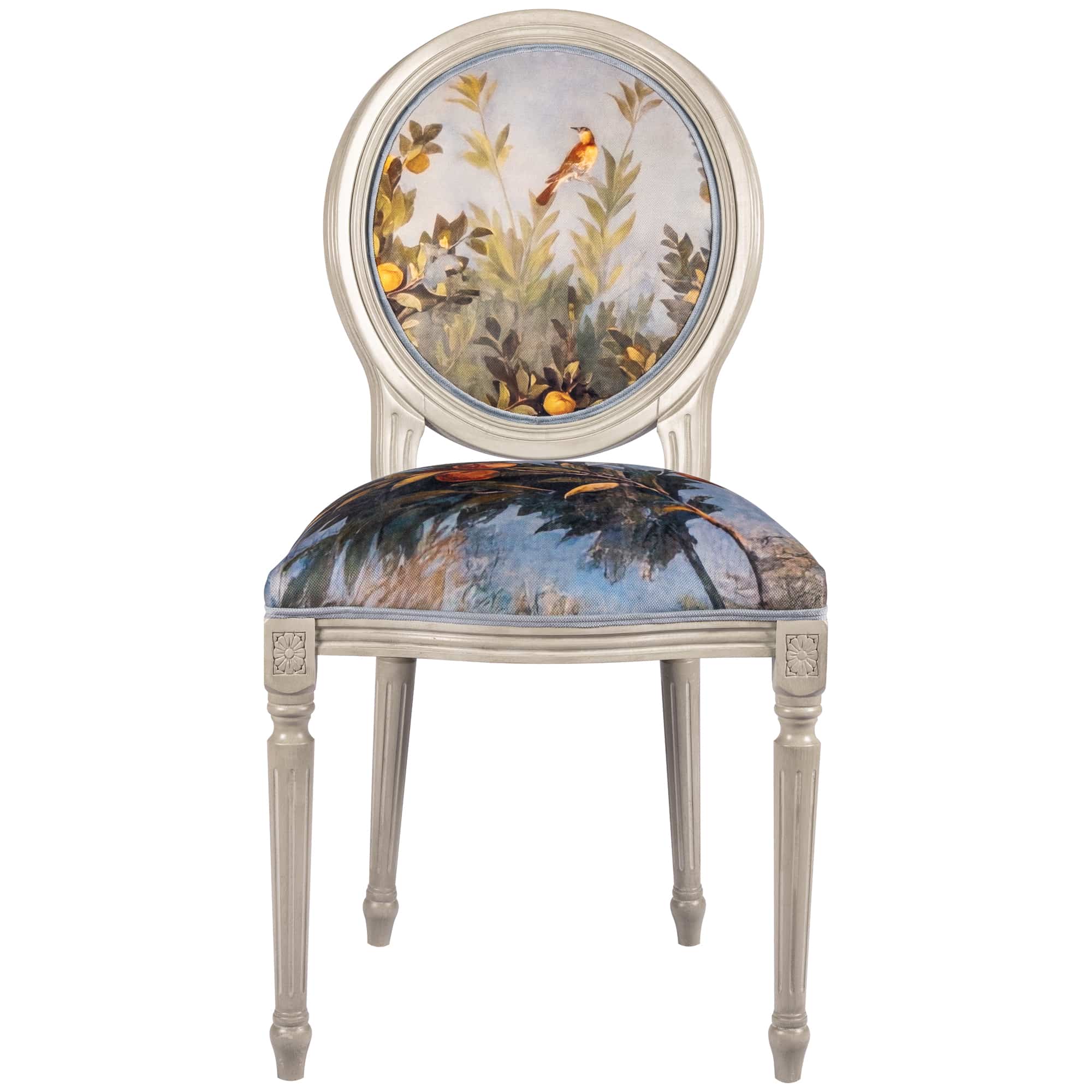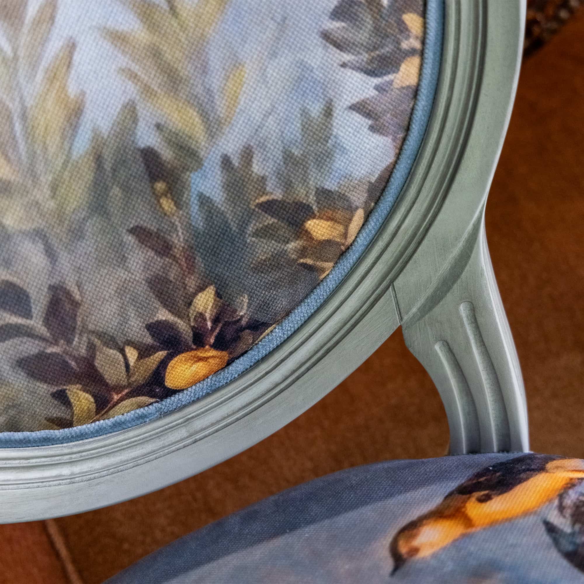 В основе дизайна коллекции – фрески виллы Ливии, жены императора Августа, датированные 30-20 гг. до нашей эры. Стул из коллекции «Вилла Ливия» словно декорация из райского сада, наполненного весенними цветами, летними фруктами и певчими птицами – вызывает полное восхищение! Создается ощущение сиюминутности происходящего.