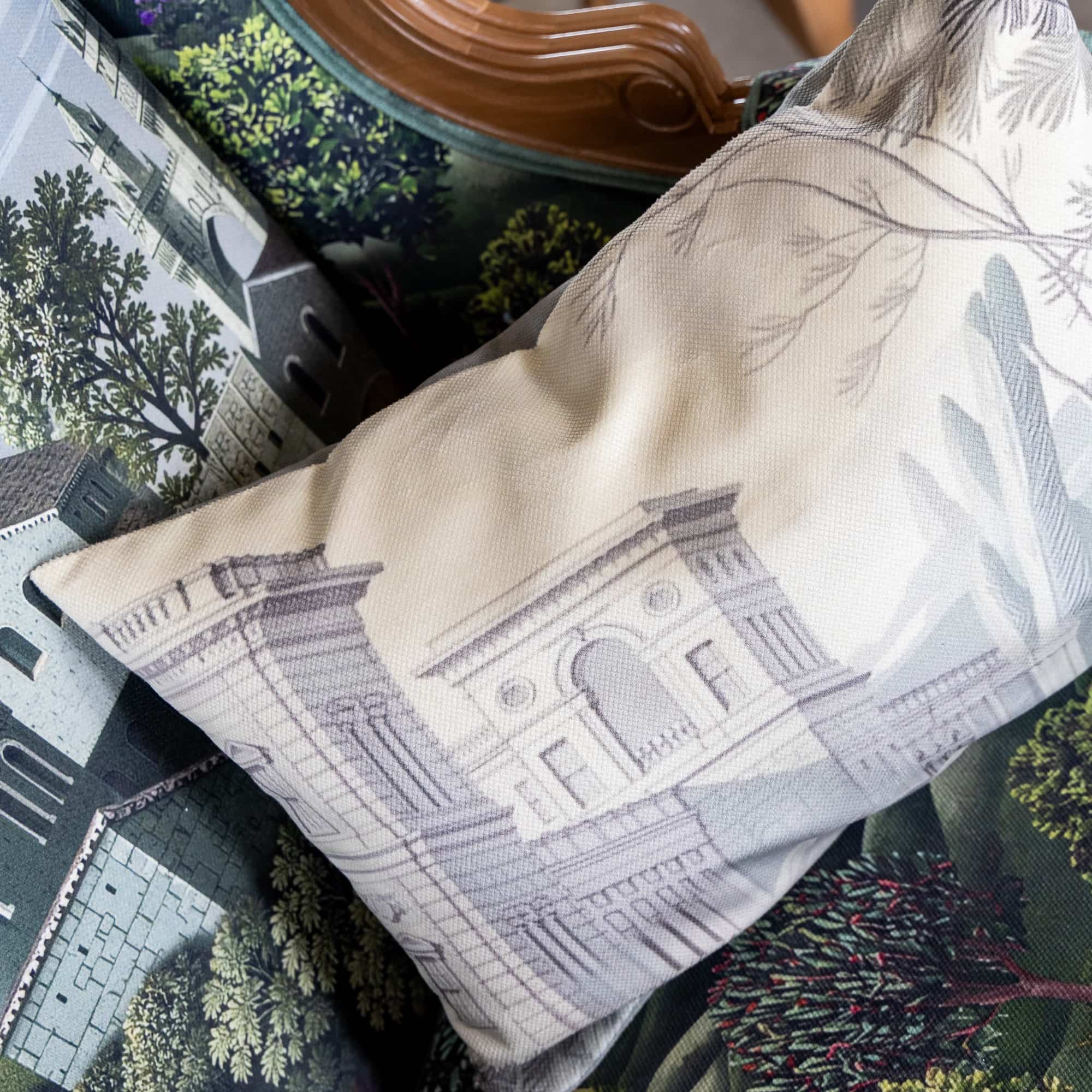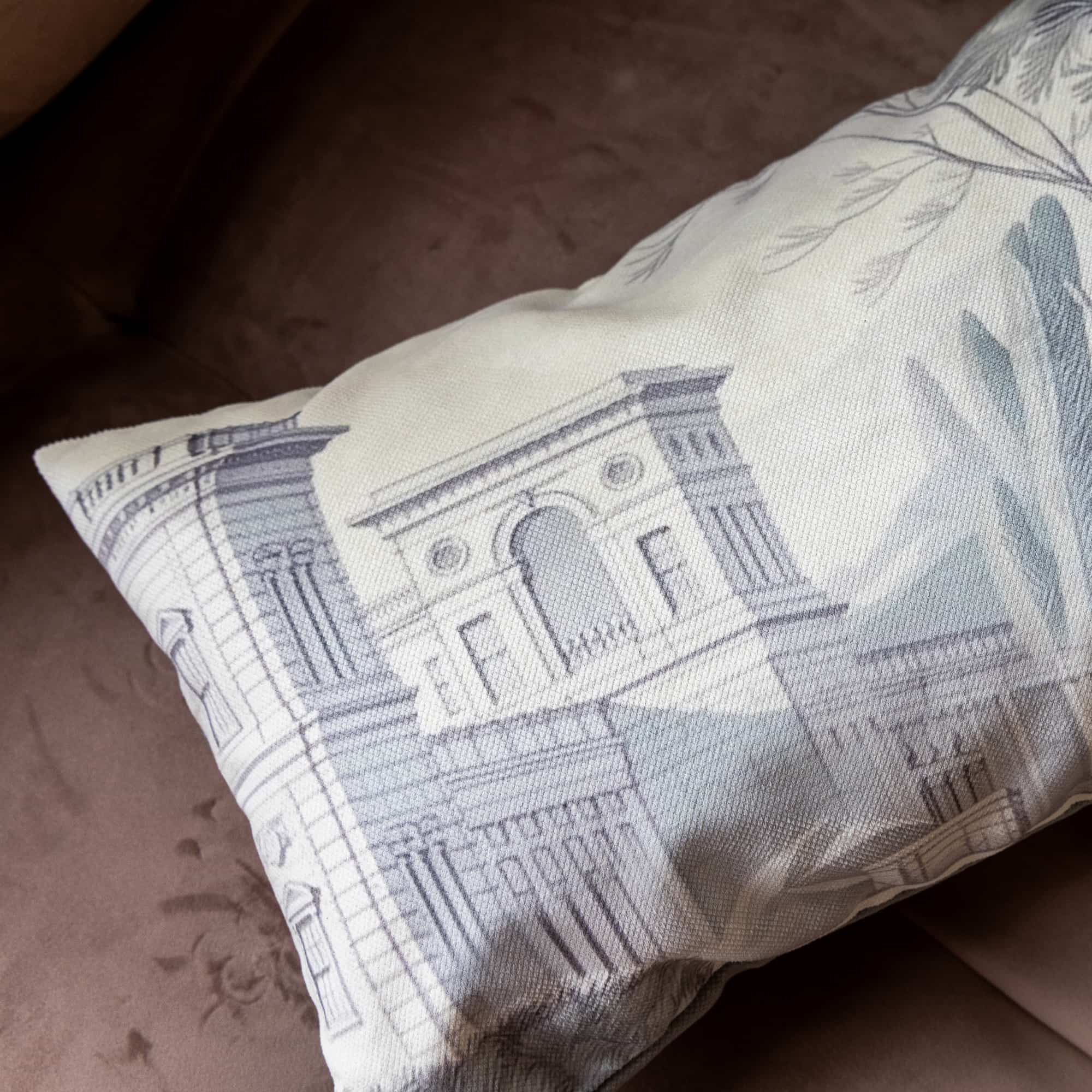 Эта декоративная подушка – изысканный акцент для любого интерьера, сочетающий в себе историческую элегантность и современную утонченность. Фрагмент старинной гравюры, украшающий лицевую сторону, переносит нас в атмосферу тихих итальянских вилл, утопающих в зелени оливковых рощ. Детали гравюры, искусно перенесенные на ткань, захватывают взгляд и пробуждают воображение.