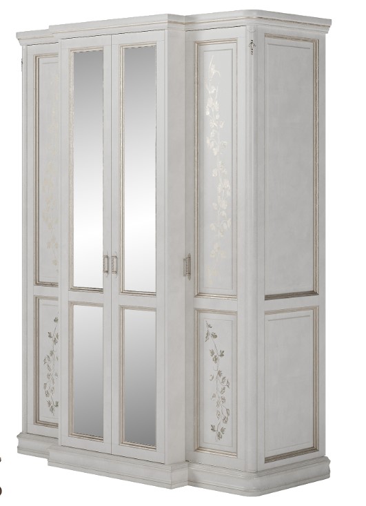 Каждый шкаф Софи Classic с росписью — уникален. Наши художники замешивают оттенки индивидуально: теплые перламутровые тона под золотую поталь, изысканный французский серый под серебро или любой цвет, перекликающийся с текстилем вашей комнаты.