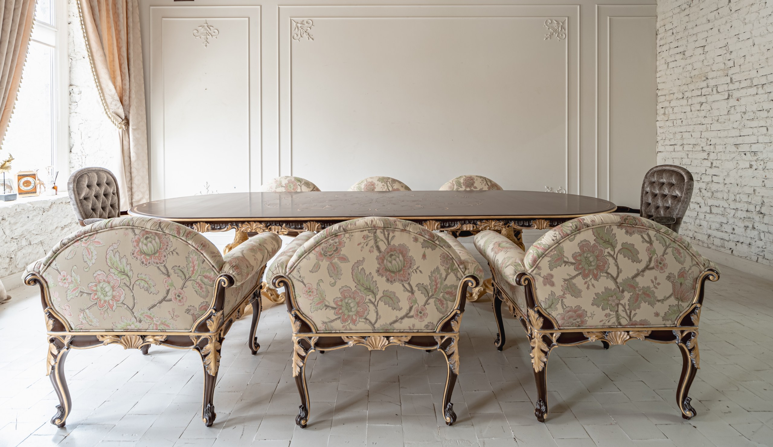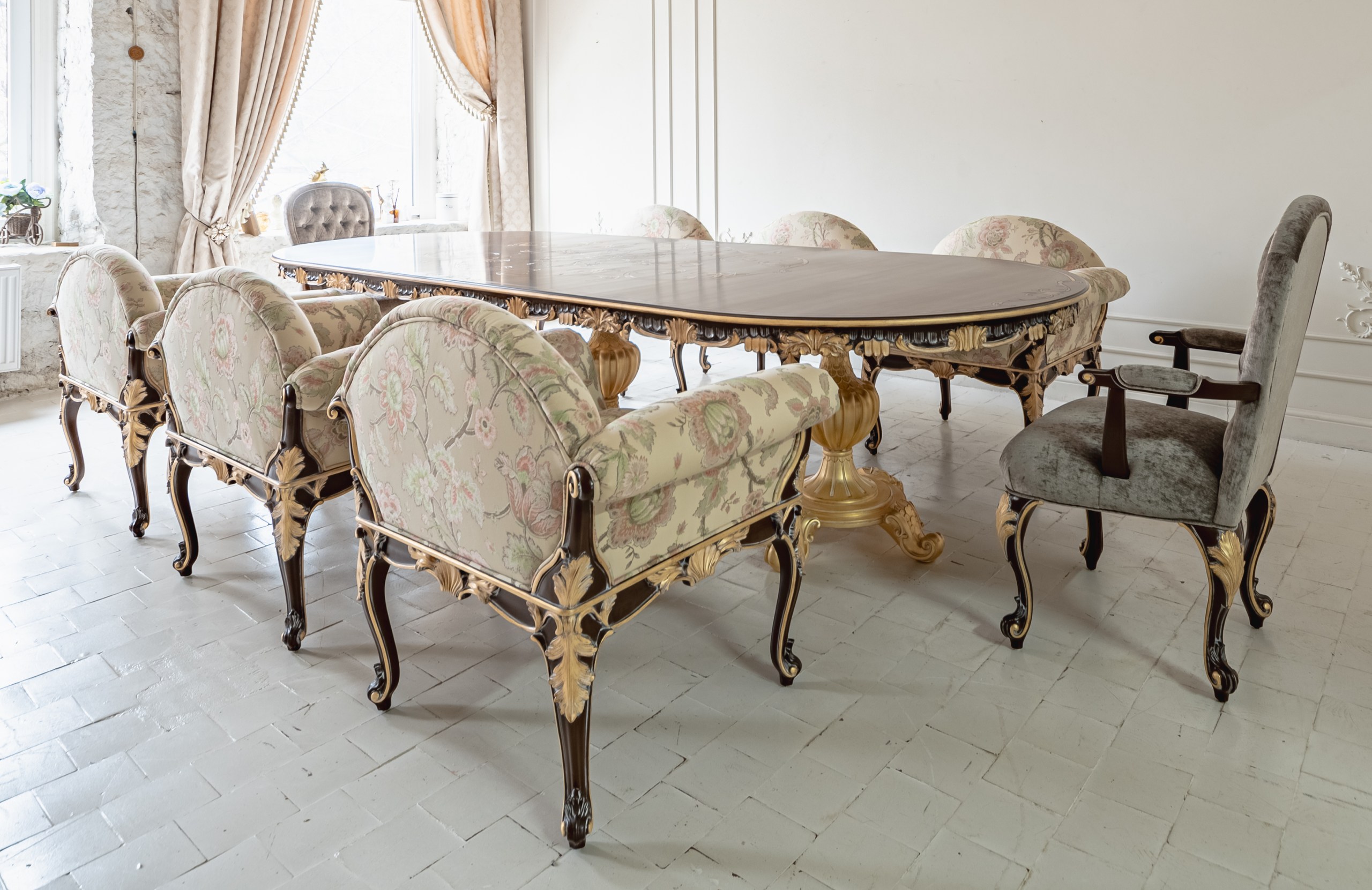 - Ножки из массива дерева: Обеспечивают устойчивость и прочность конструкции. Дерево может быть обработано итальянскими красками в любой цвет или декорировано листовой поталью для создания изысканного акцента.