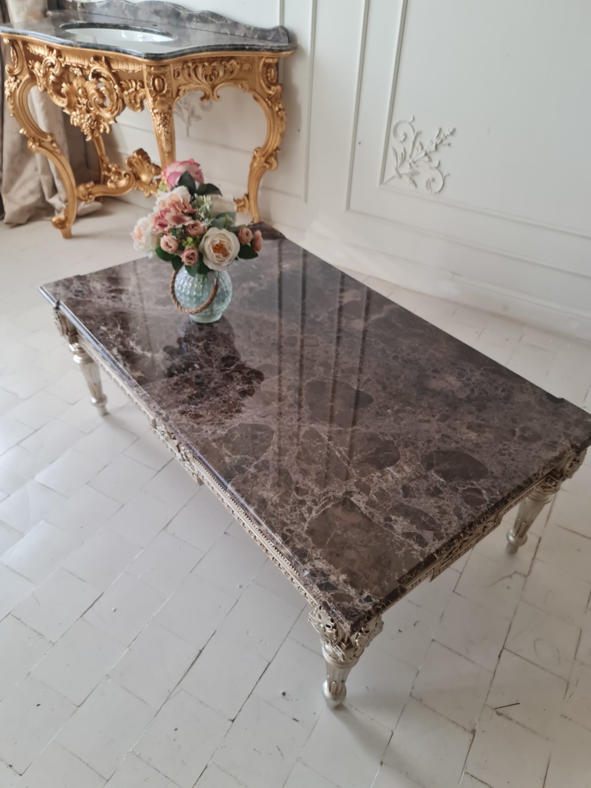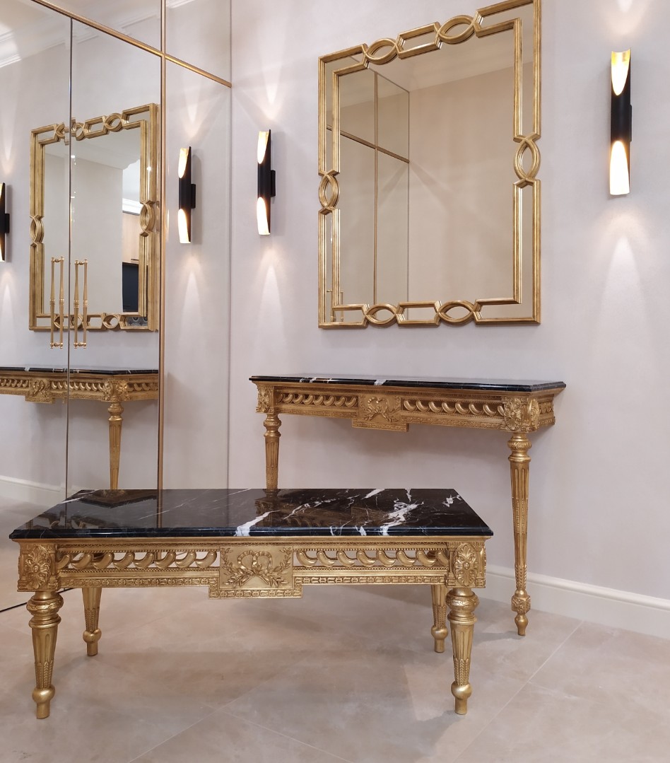 Цвет Золотой, Черный Размеры 133*46*80 Стиль Классический Категория товара Журнальные столы Комната Гостиная Наличие товара под заказ Особенности изготовление в любом цвете, изготовление по вашим размерам, сборка не требуется -