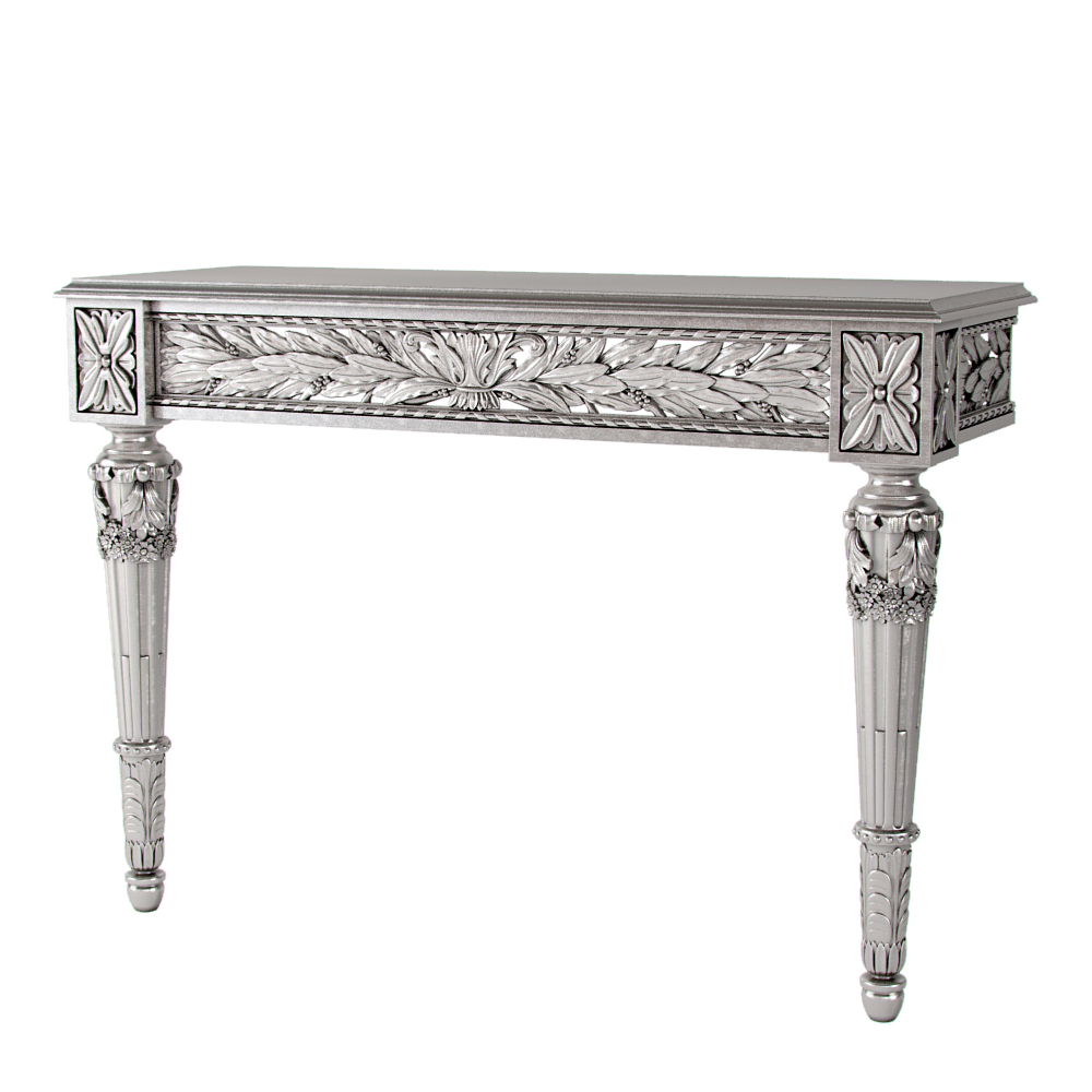Прочная и стабильная основа консоли выполнена из высококачественного МДФ, что гарантирует долговечность и сохранение безупречной формы. Декоративные элементы, включая фигурные ножки и резные молдинги, изготовлены из итальянского мебельного полиуретана. Этот материал позволяет с ювелирной точностью воспроизводить сложные рельефы и лепнину, придавая консоли вид дорогой антикварной мебели, выполненной вручную.