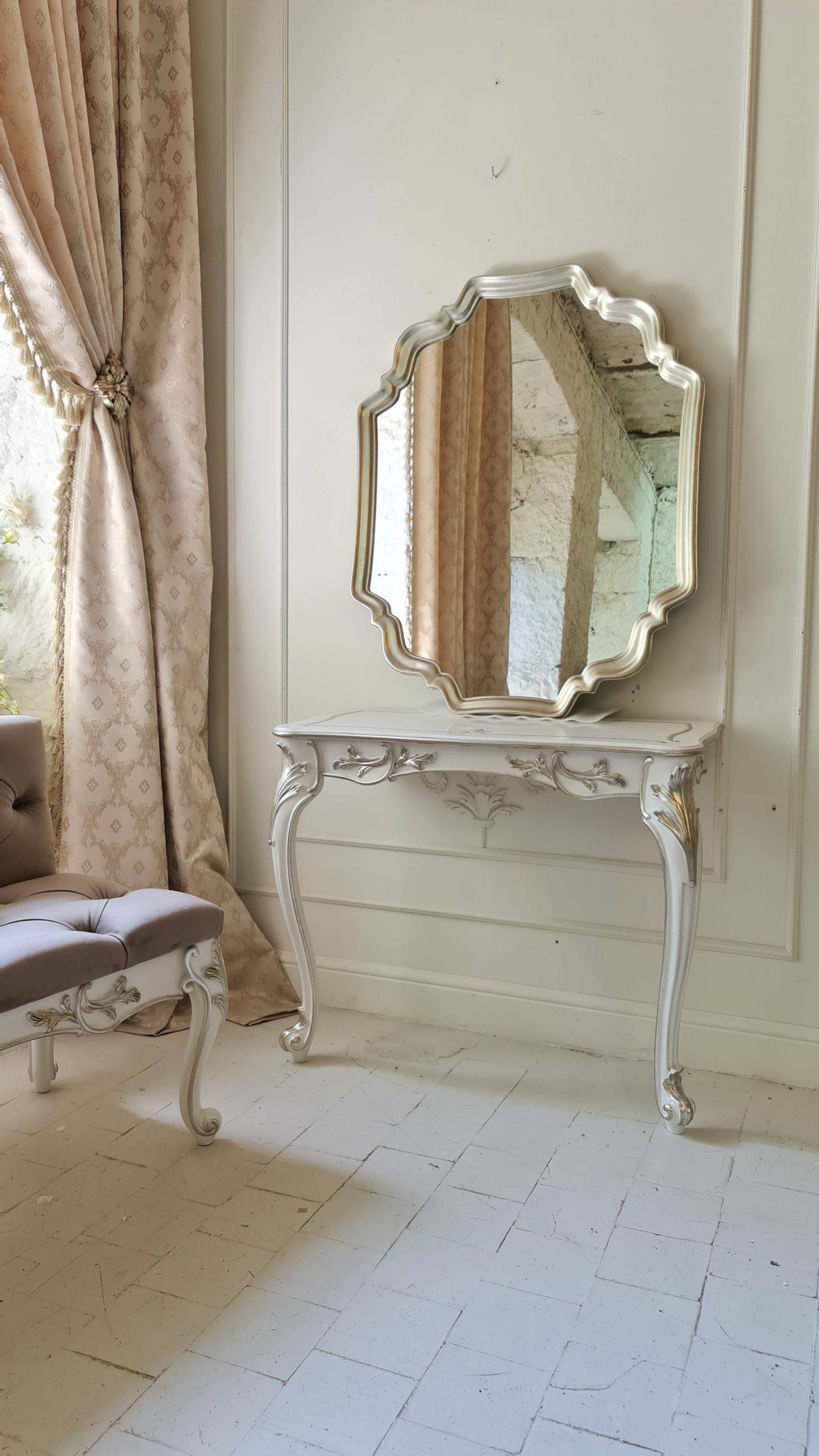 В прихожей консоль Жозефина станет элегантным решением для организации входной зоны, идеально сочетаясь с зеркалом в классической раме. В гостиной она может служить стильным основанием для светильников, фоторамок или предметов декора, создавая целостную композицию у стены.