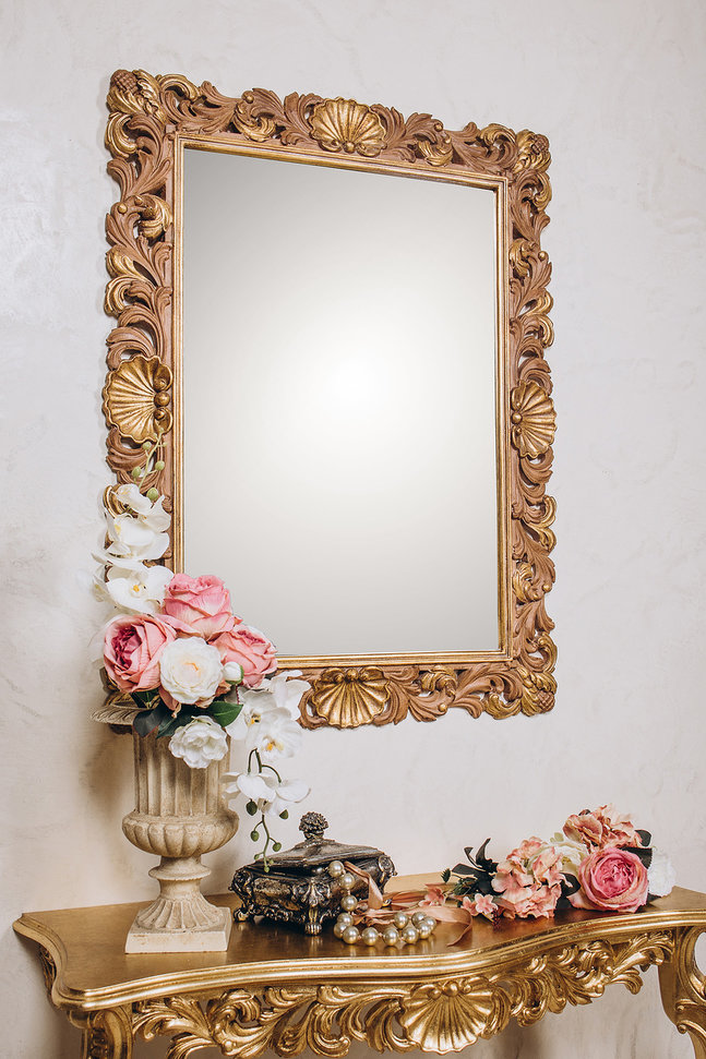 Цвет Золотой Размеры 76*100 Стиль Классический Категория товара Настенные зеркала Комната Ванная, Гостиная, Прихожая Наличие товара под заказ Особенности изготовление в любом цвете, изготовление по вашим размерам -