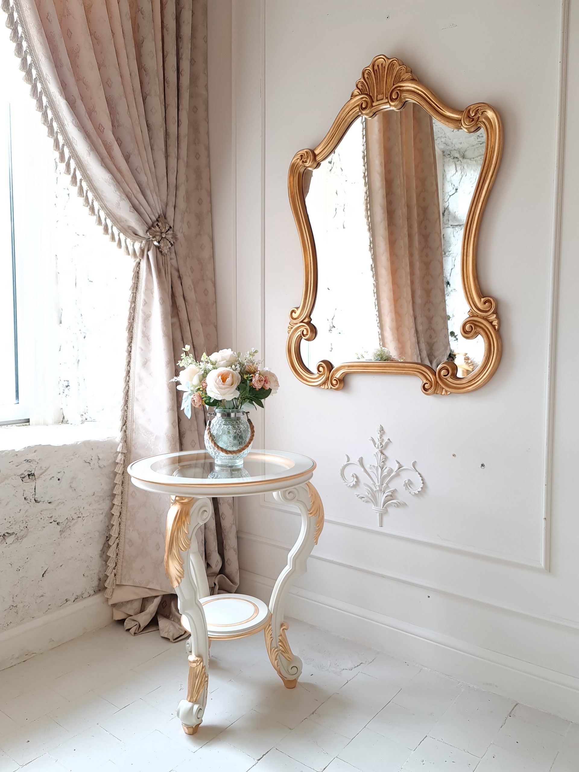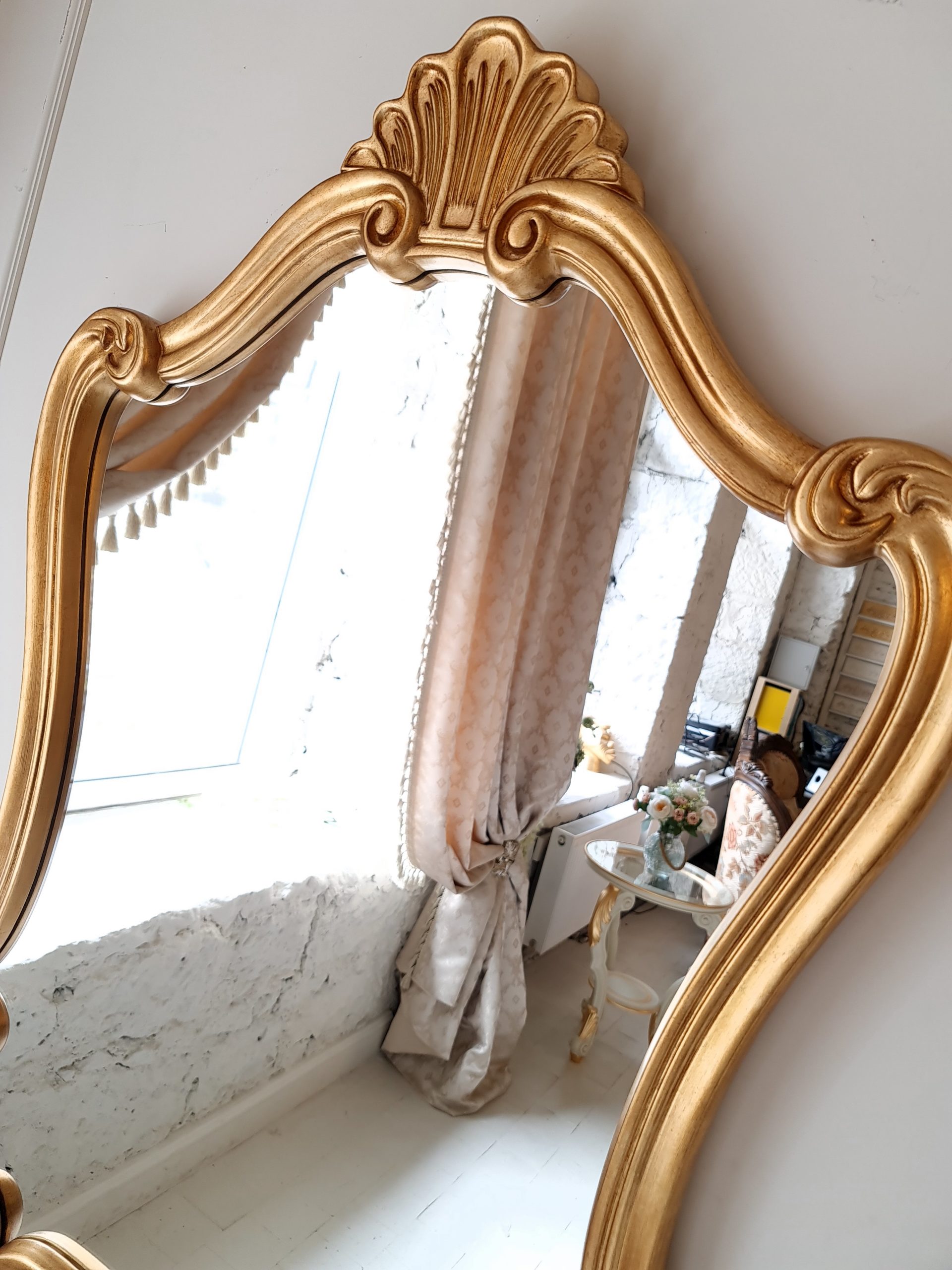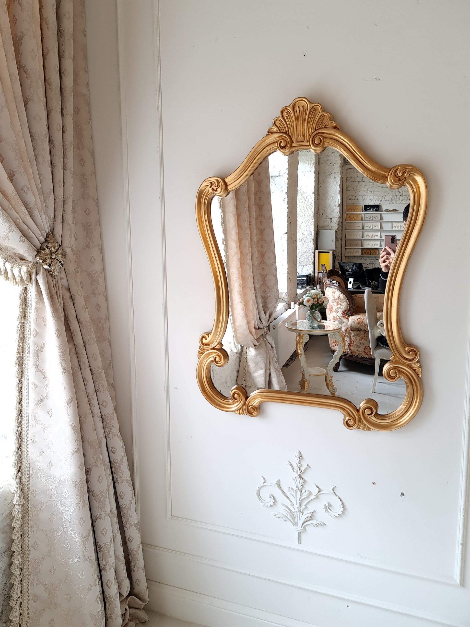 Истинная ценность и уникальность рождаются в отделке. Мы используем итальянские краски, знаменитые своей глубиной и чистотой цвета. Вершиной мастерства является искусство работы с листовой поталью (сусальным золотом или серебром). Эта кропотливая, полностью ручная техника создает поверхность с живым, теплым, мерцающим блеском, недостижимым для промышленных методов. Каждое такое зеркало становится единственным в своем роде.