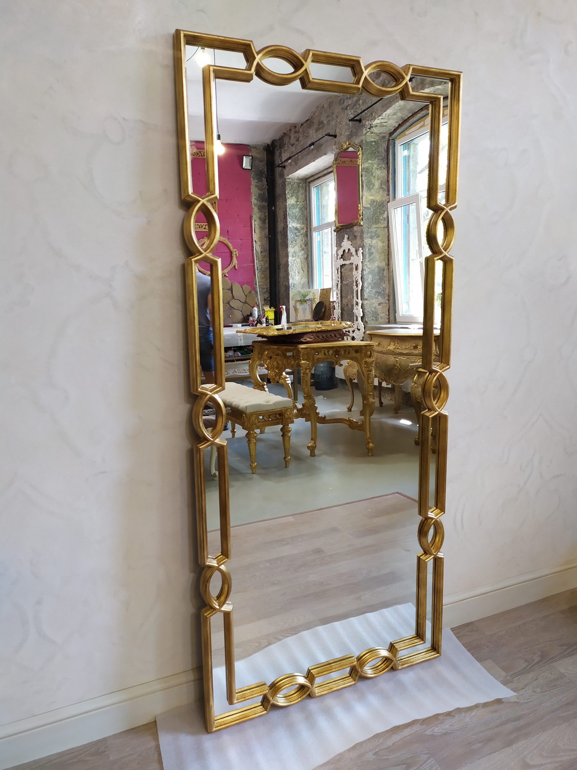Ростовое зеркало также функционально в просторной ванной комнате, где добавляет света и простора, и может использоваться в фитнес-зоне или танцевальном классе. Это универсальный предмет для мест, где важен полный контроль над своим отражением.