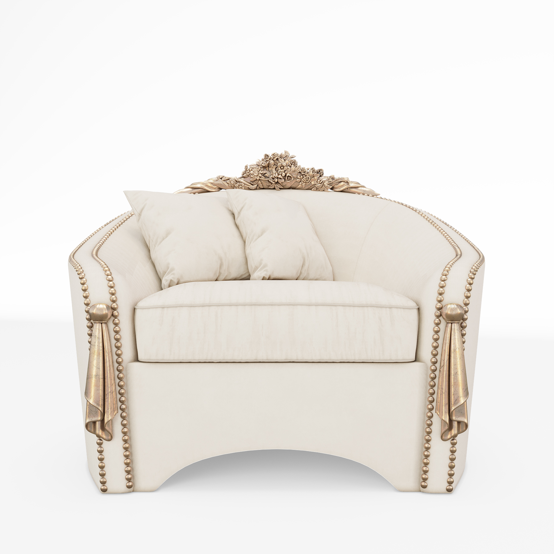 - Ножки из массива дерева: Высокие, устойчивые ножки придают креслу величественный вид и надежность. Массив может быть обработан итальянскими красками любого оттенка или декорирован листовой поталью для подчеркивания роскоши.