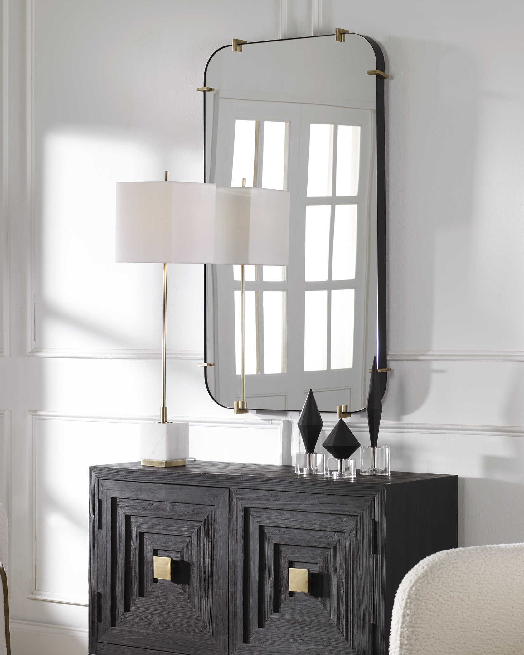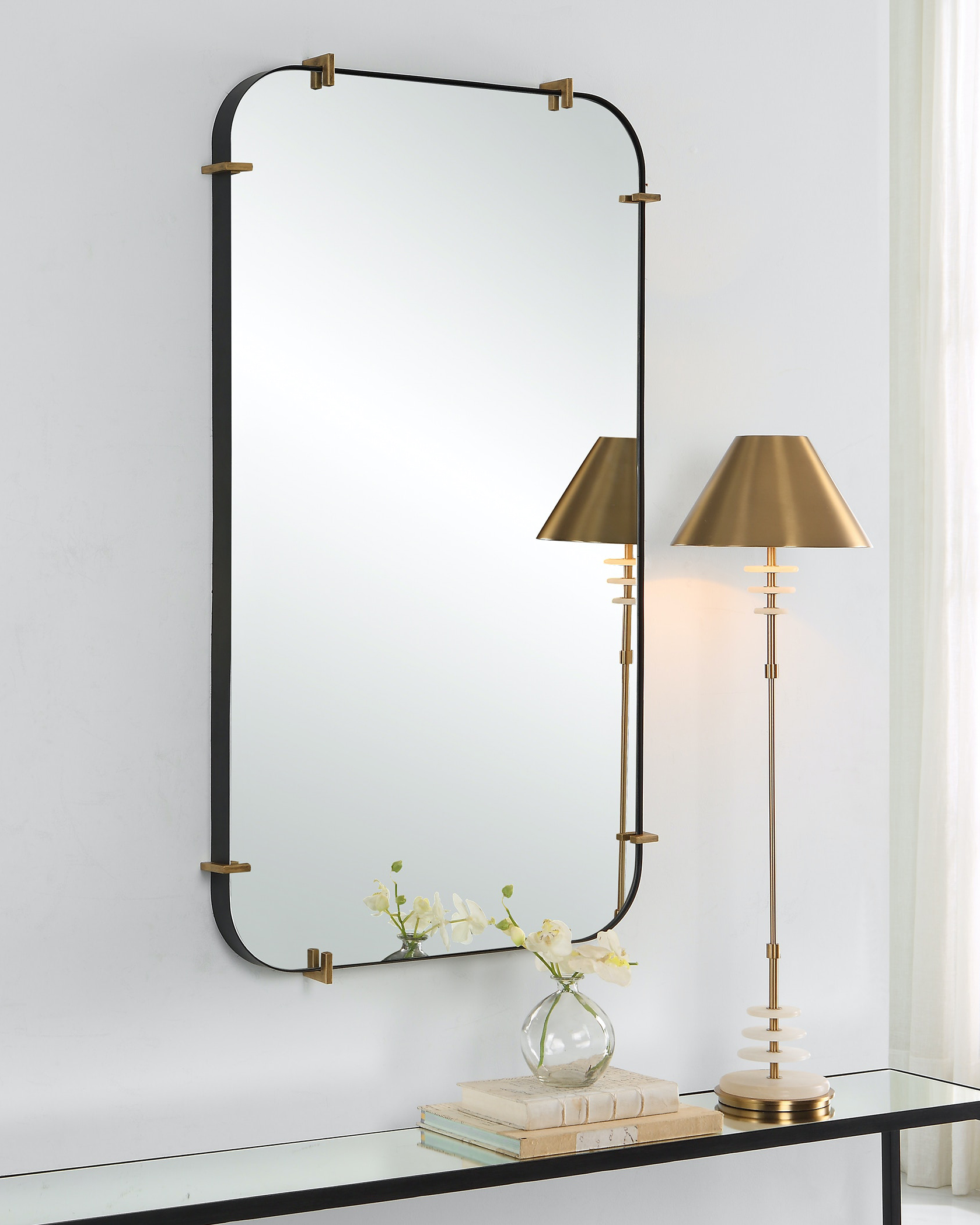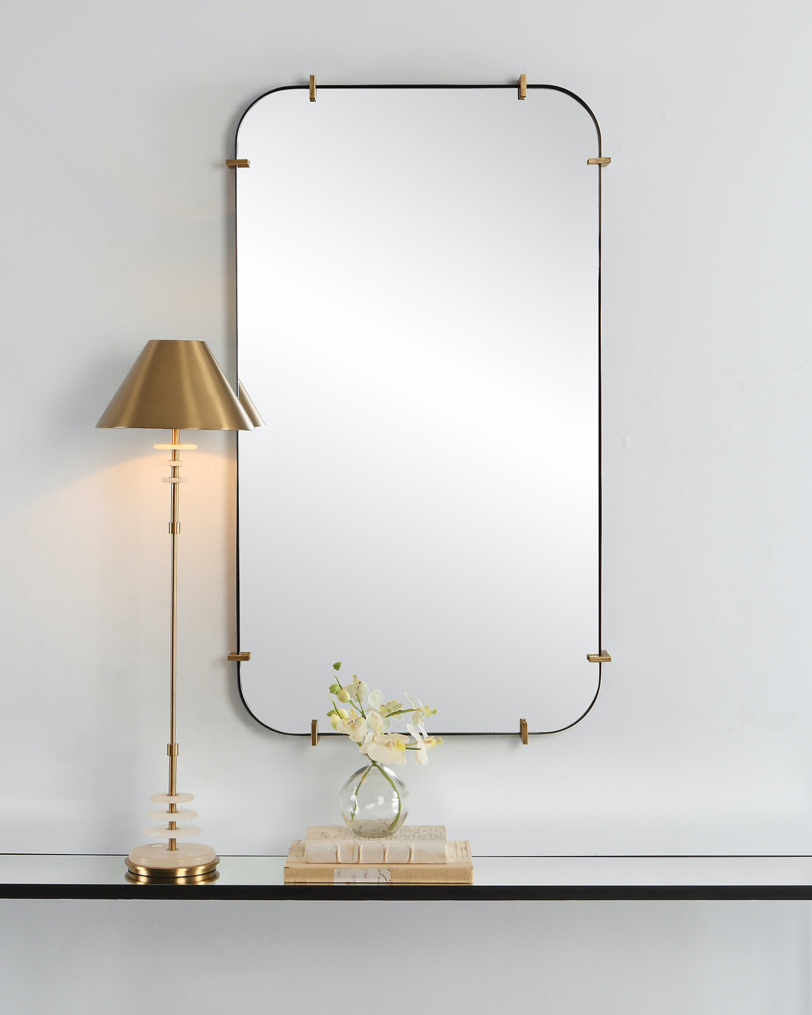 Настенное зеркало в раме “Пали” – это идеальное решение для тех, кто ценит современный и индустриальный стиль в интерьере. Основным преимуществом зеркала “Пали” является его стильная рама из черного металла. Черный цвет придает зеркалу современность вид, рама зеркала украшена небольшими декоративными деталями в цвете латунь. Золотые элементы также слегка состарены, что придает зеркалу привлекательности и делает его еще более интересным. Оно может быть повешено как горизонтально, так и вертикально, что позволяет вам выбрать оптимальное положение в зависимости от ваших предпочтений и потребностей. Благодаря своим размерам, “Пали” будет отлично смотреться в любой комнате вашего дома – в прихожей, гостиной, спальне или даже в ванной комнате. Это зеркало не только будет служить вашему основному предназначению – отражать, но и создаст впечатление пространства и света в помещении. Настенное зеркало “Пали” поможет создать уютную и стильную атмосферу в вашем доме!