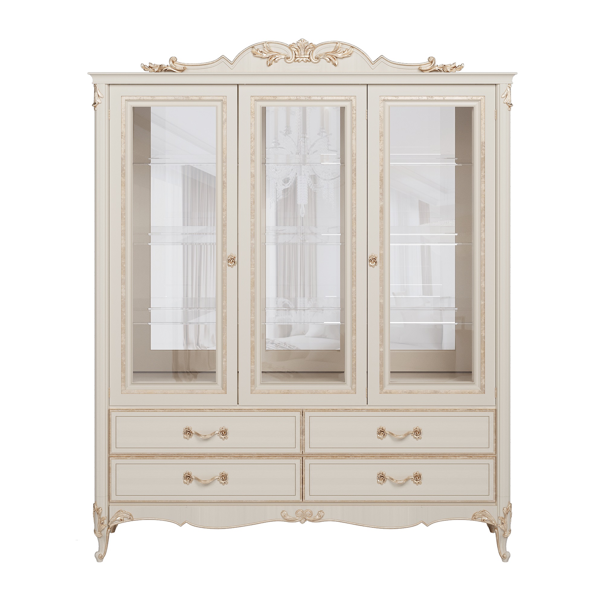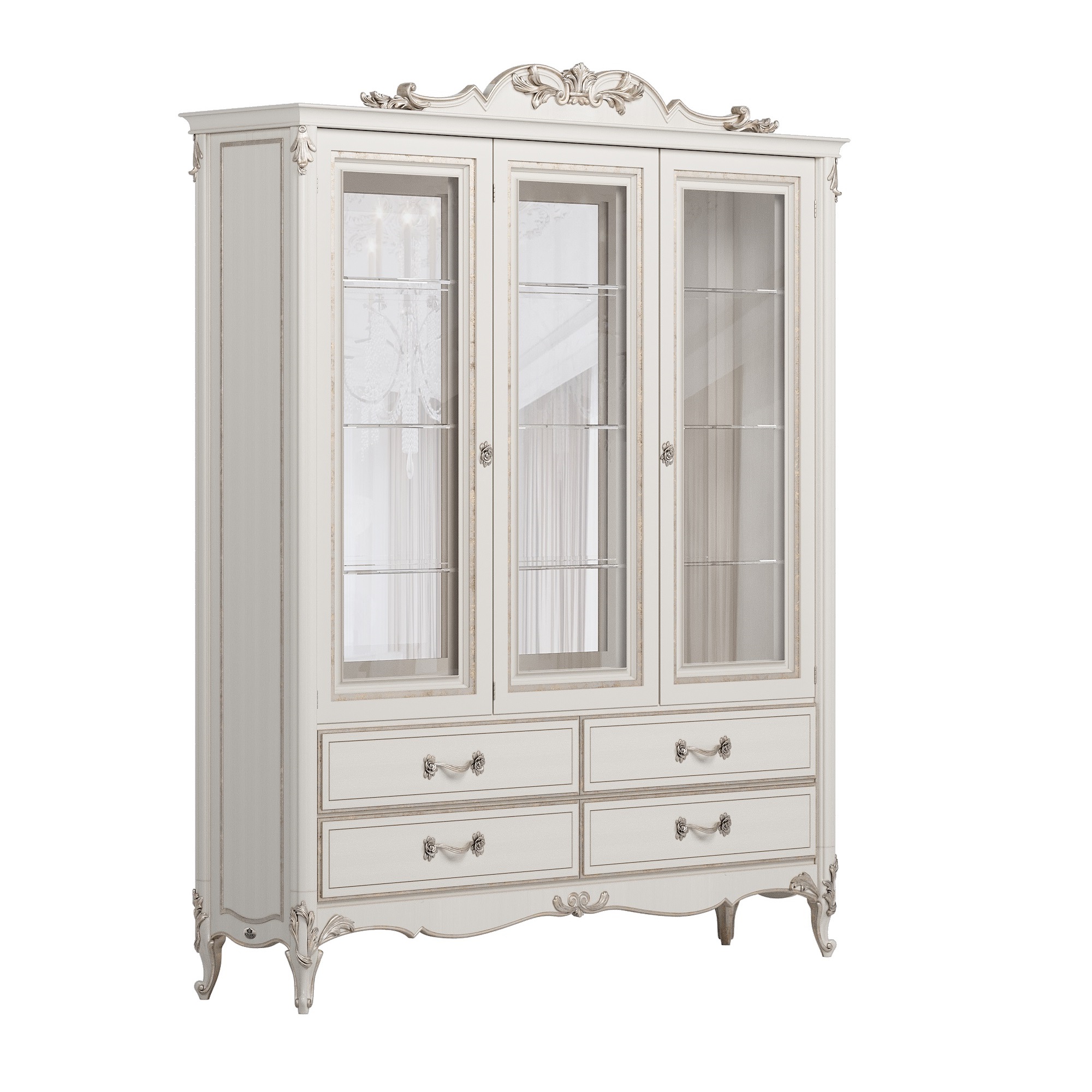 Витрина-шкаф Оливия — это универсальное решение для тех, кто ценит и красоту открытых полок, и практичность закрытых систем хранения. Её классический дизайн с элементами декора из полиуретана создаёт солидный и строгий образ, идеально подходящий для организации пространства с безупречным вкусом.