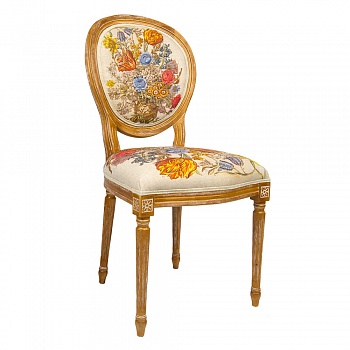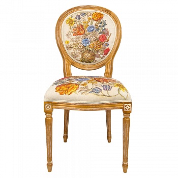 Цветочные гравюры полностью опоясывают обивку, включая оборотную сторону спинки. В любом ракурсе Ваш стул выглядит уютно и гармонично.