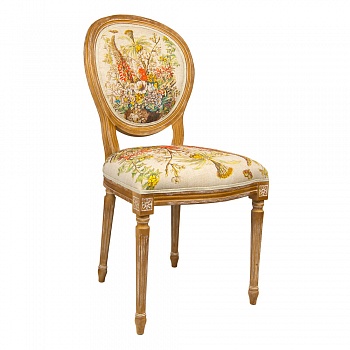 Цветочные гравюры полностью опоясывают обивку, включая оборотную сторону спинки. В любом ракурсе Ваш стул выглядит уютно и гармонично.