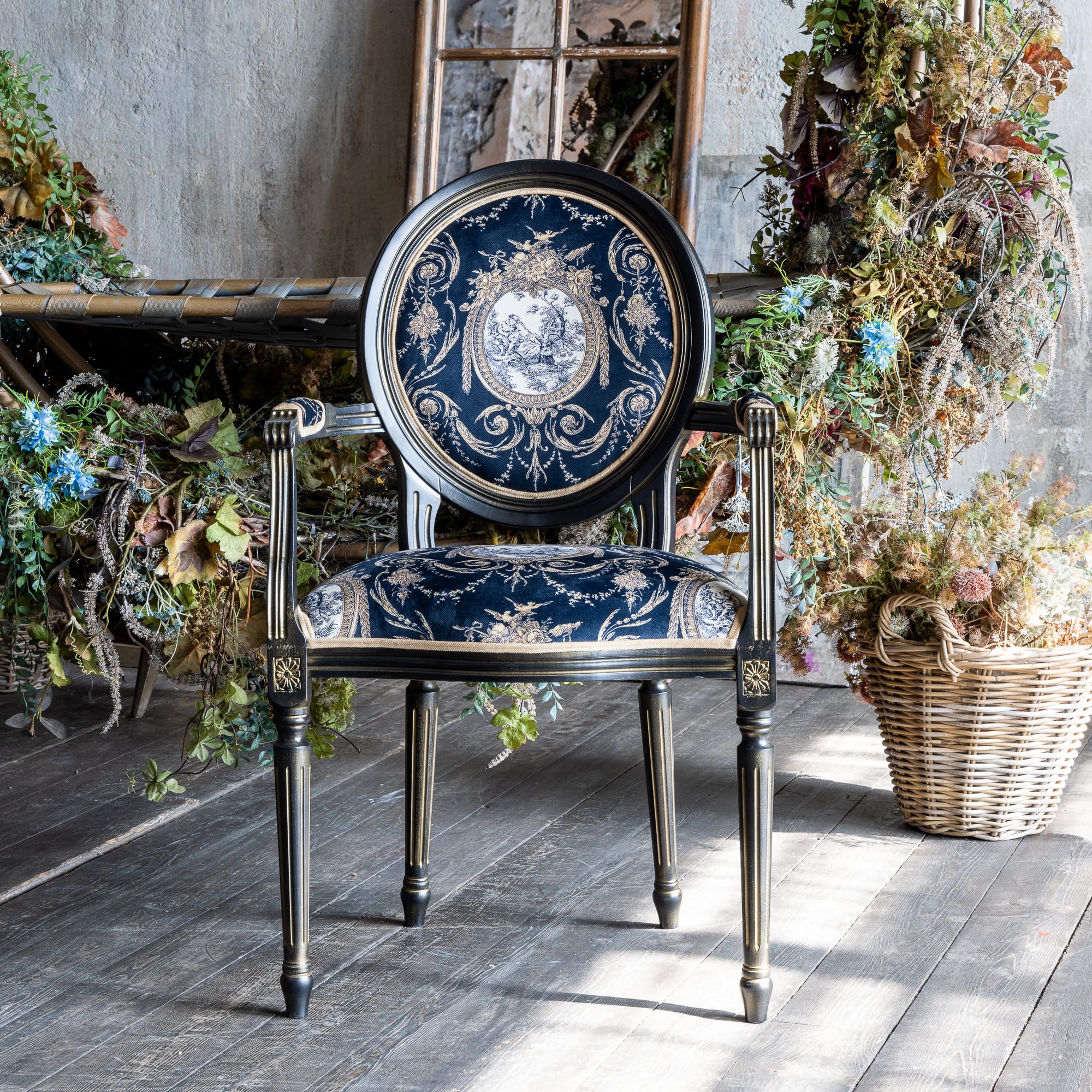 Креслу «Элегия» присущи изящество и изысканность, грациозность и легкость, а также галантная роскошь. Этот стул с подлокотниками станет весьма изысканным элементом интерьера. Он словно пропитан аристократическими благородными формами. Это прекрасный выбор для тех, кто хочет добавить в свой интерьер шик и роскошь. Узор «туаль де Жуи», который использован в коллекции «Элегия», в мир высокой моды ввел Кристиан Диор. В 1947 году именно в этим пасторальным орнаментом были украшены стены первого бутика модельера. И сегодня стиль Жуи является данью прошлому и желанием окунуться в чарующую атмосферу Франции.