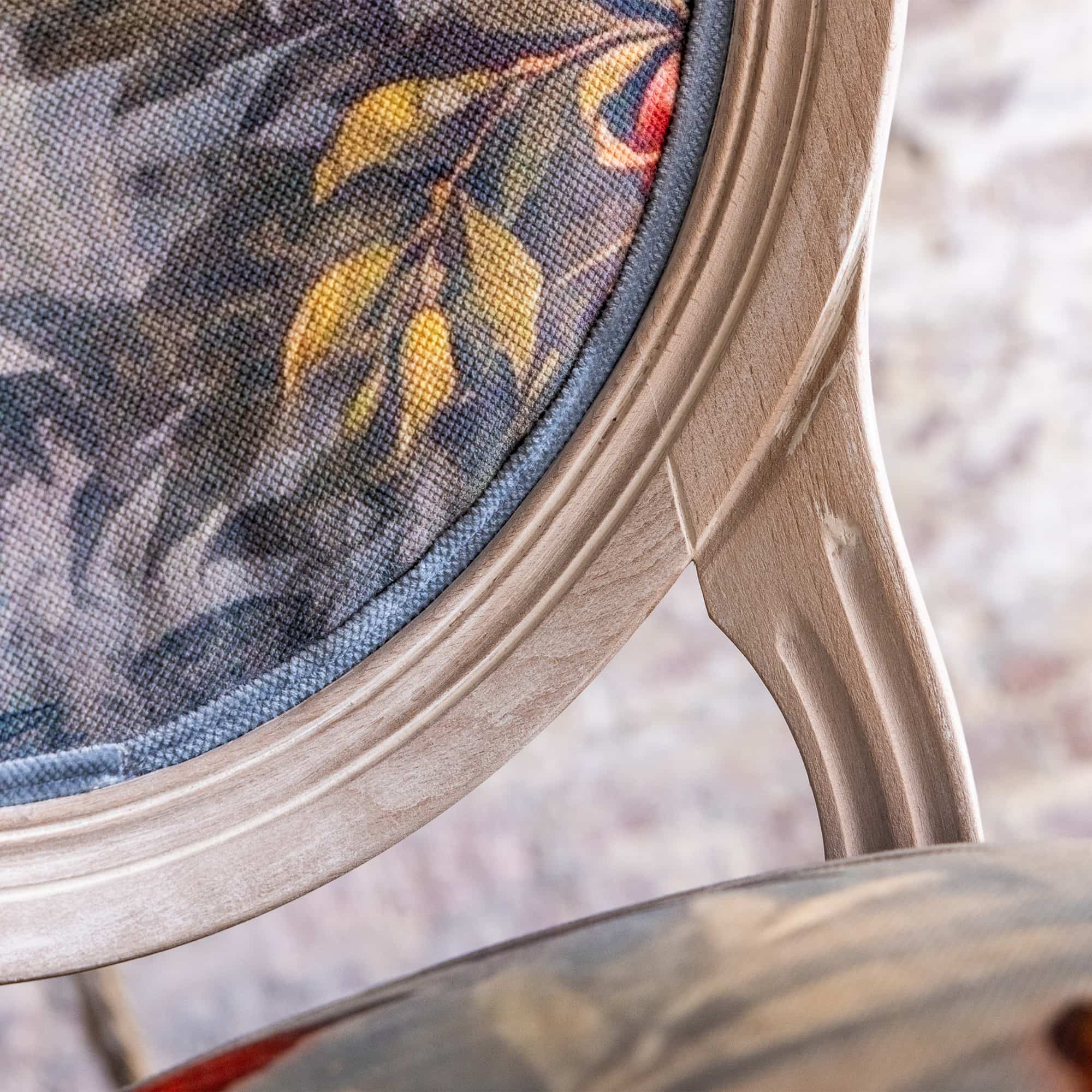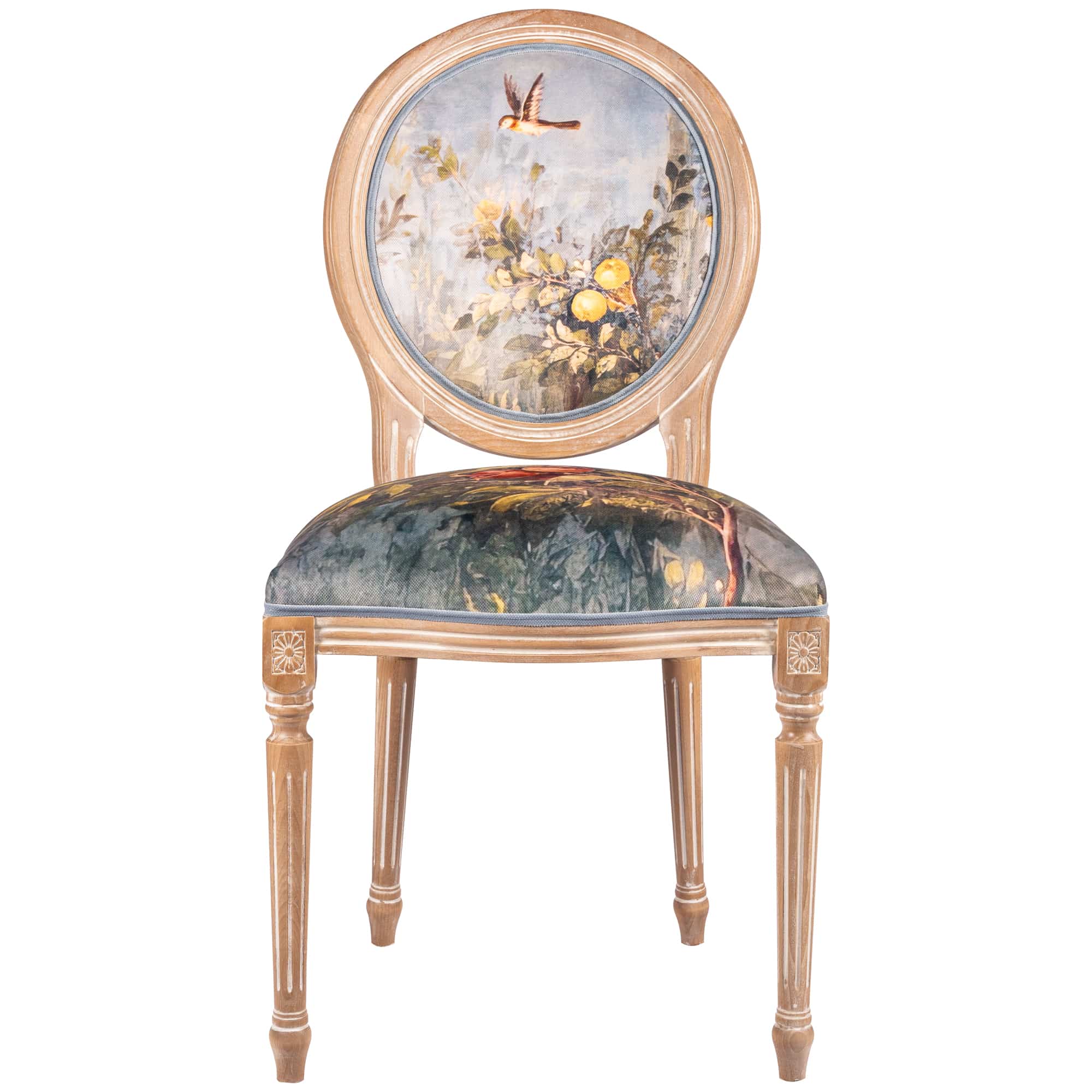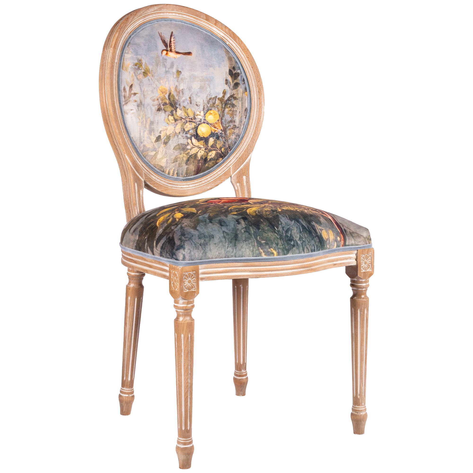 В основе дизайна коллекции – фрески виллы Ливии, жены императора Августа, датированные 30-20 гг. до нашей эры. Стул из коллекции «Вилла Ливия» словно декорация из райского сада, наполненного весенними цветами, летними фруктами и певчими птицами – вызывает полное восхищение! Создается ощущение сиюминутности происходящего.