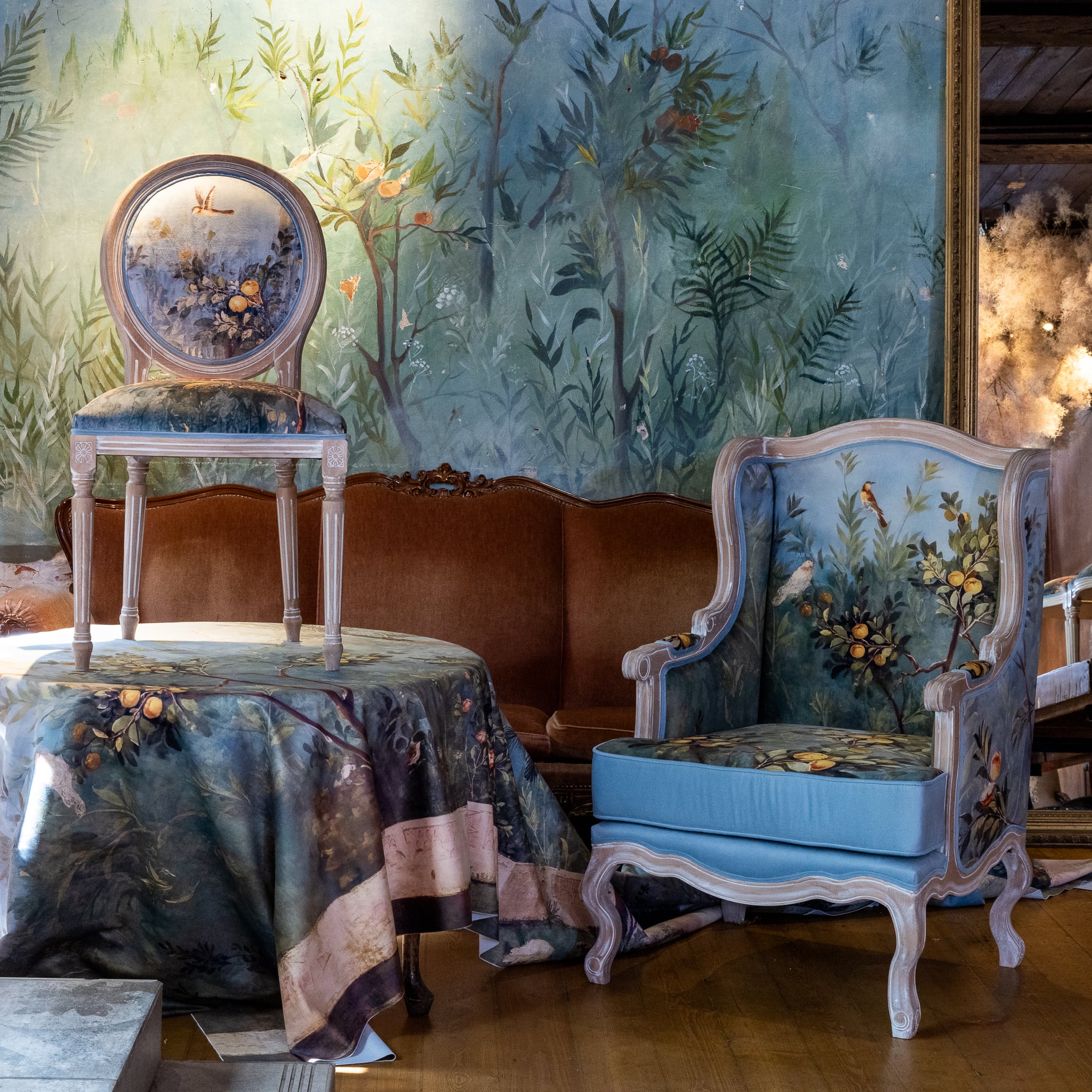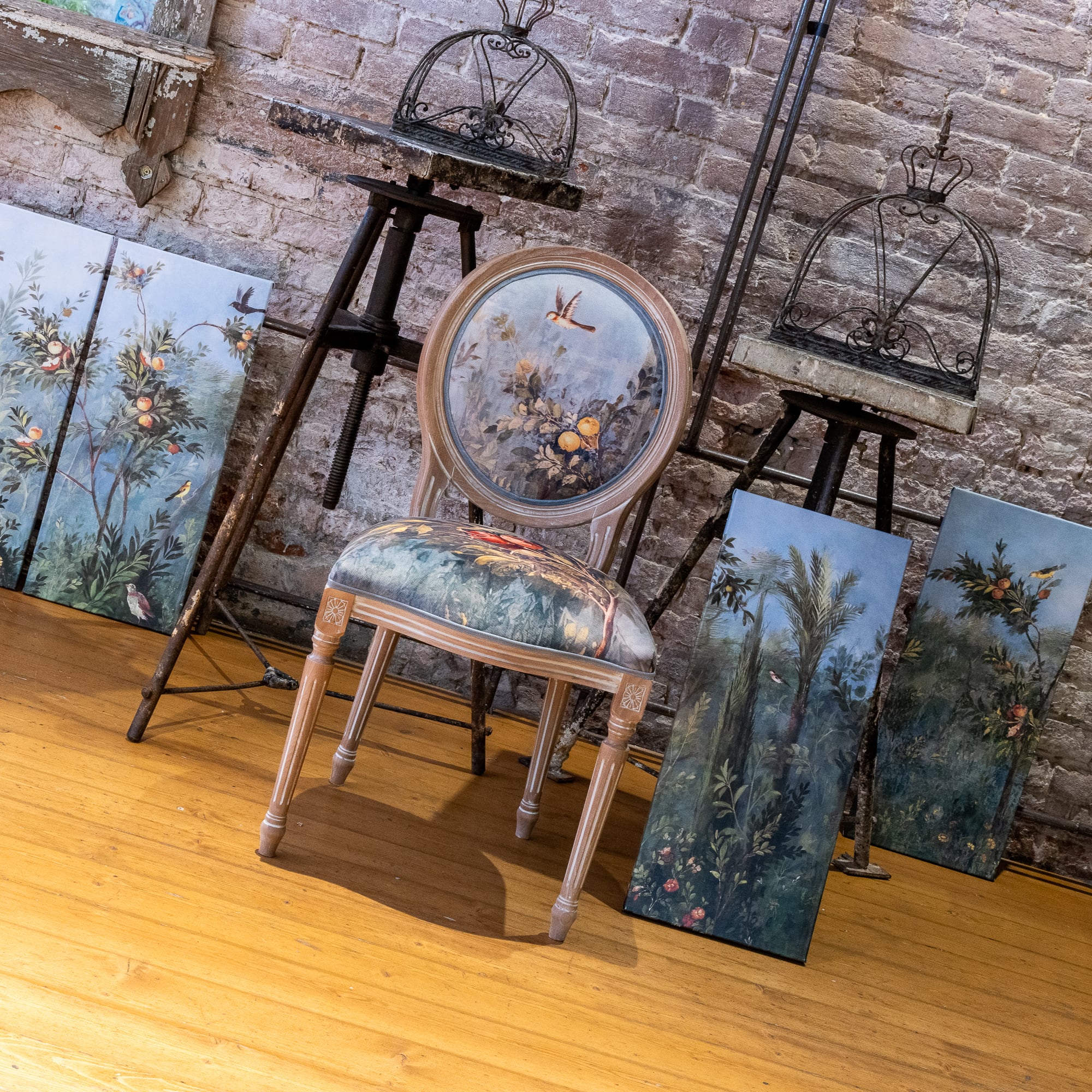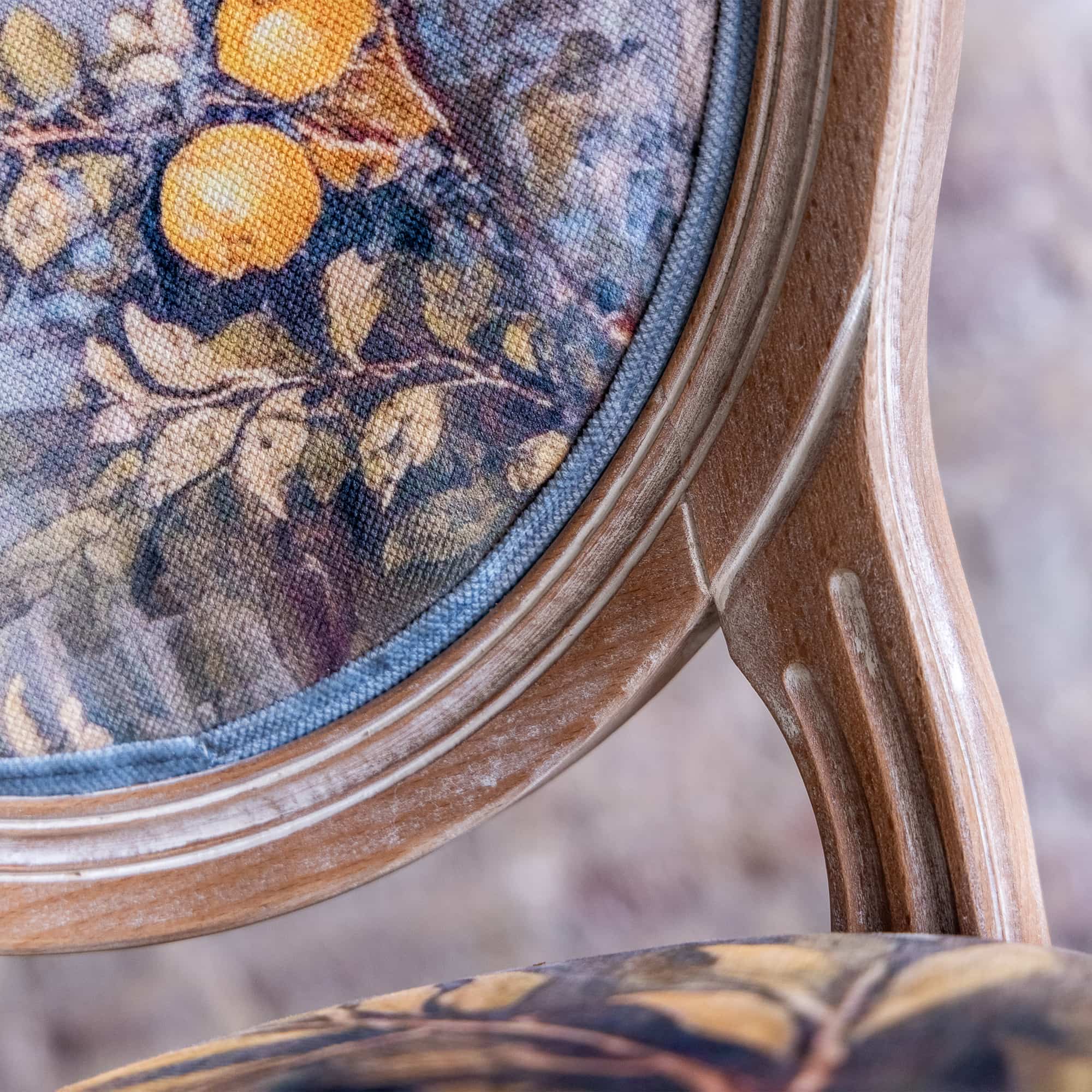 В основе дизайна коллекции – фрески виллы Ливии, жены императора Августа, датированные 30-20 гг. до нашей эры. Стул из коллекции «Вилла Ливия» словно декорация из райского сада, наполненного весенними цветами, летними фруктами и певчими птицами – вызывает полное восхищение! Создается ощущение сиюминутности происходящего.