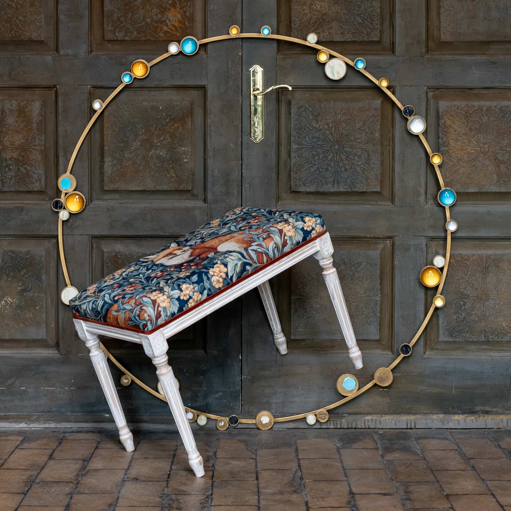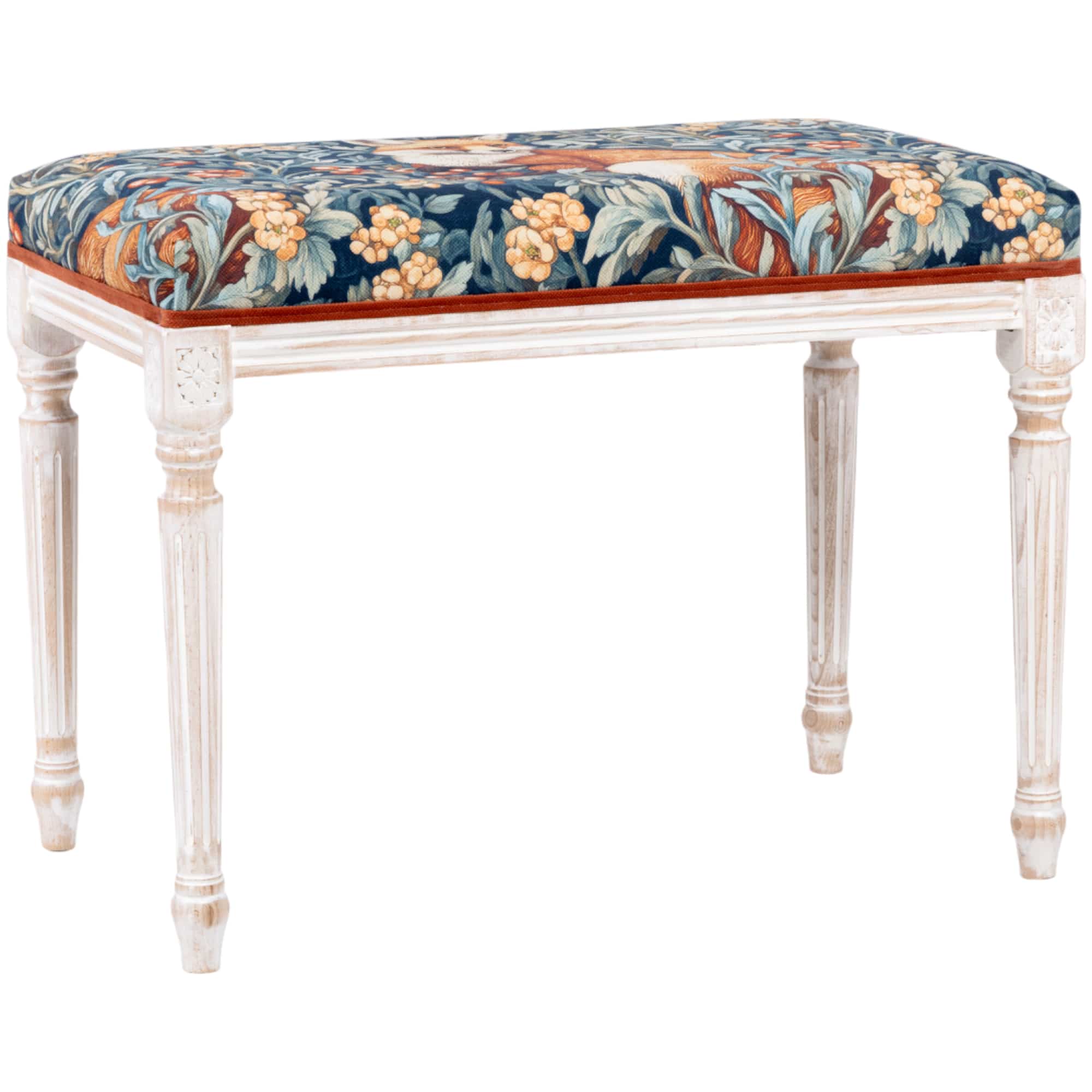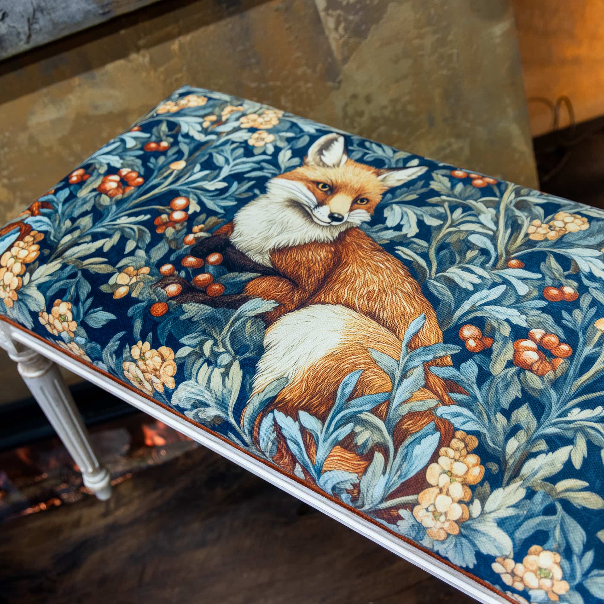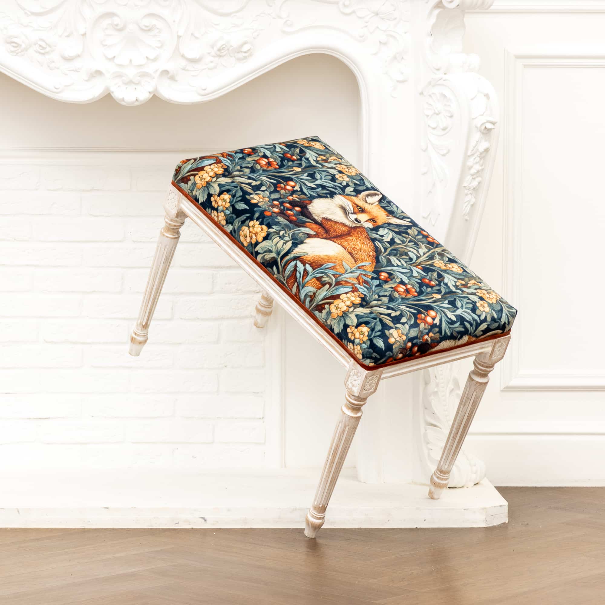 Банкетка «Бал сказок. Лиса» – это чарующая встреча английской классики Уильяма Морриса и сказочного волшебства. В центре внимания – лукавая лисица, облаченная в огненную шубку, окруженная изумрудным хороводом листьев, россыпью ярких цветов и рубиновых ягод. Пышный хвост с кисточкой цвета первого снега и белоснежная манишка добавляют образу игривости и лучистого тепла. Красный кант, словно тонкая нить волшебства, очерчивает силуэт банкетки, делая акцент на ее изящных формах. Каркас из светлого бука, тронутый дымкой белой патины, источает аристократизм и утонченность. Банкетка «Бал сказок. Лиса» станет изысканным акцентом в любом интерьере, наполняя его уютом и неповторимым шармом, словно сошедшим со страниц любимой сказки.