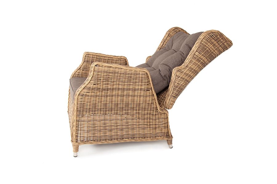 Садовое кресло дополнено практичными подушками для комфортного размещения. Они выполнены в серо-коричневом цвете из полиэстера, плотность которого достигает 230гр/м2. Материал имеет влагоотталкивающую пропитку. -