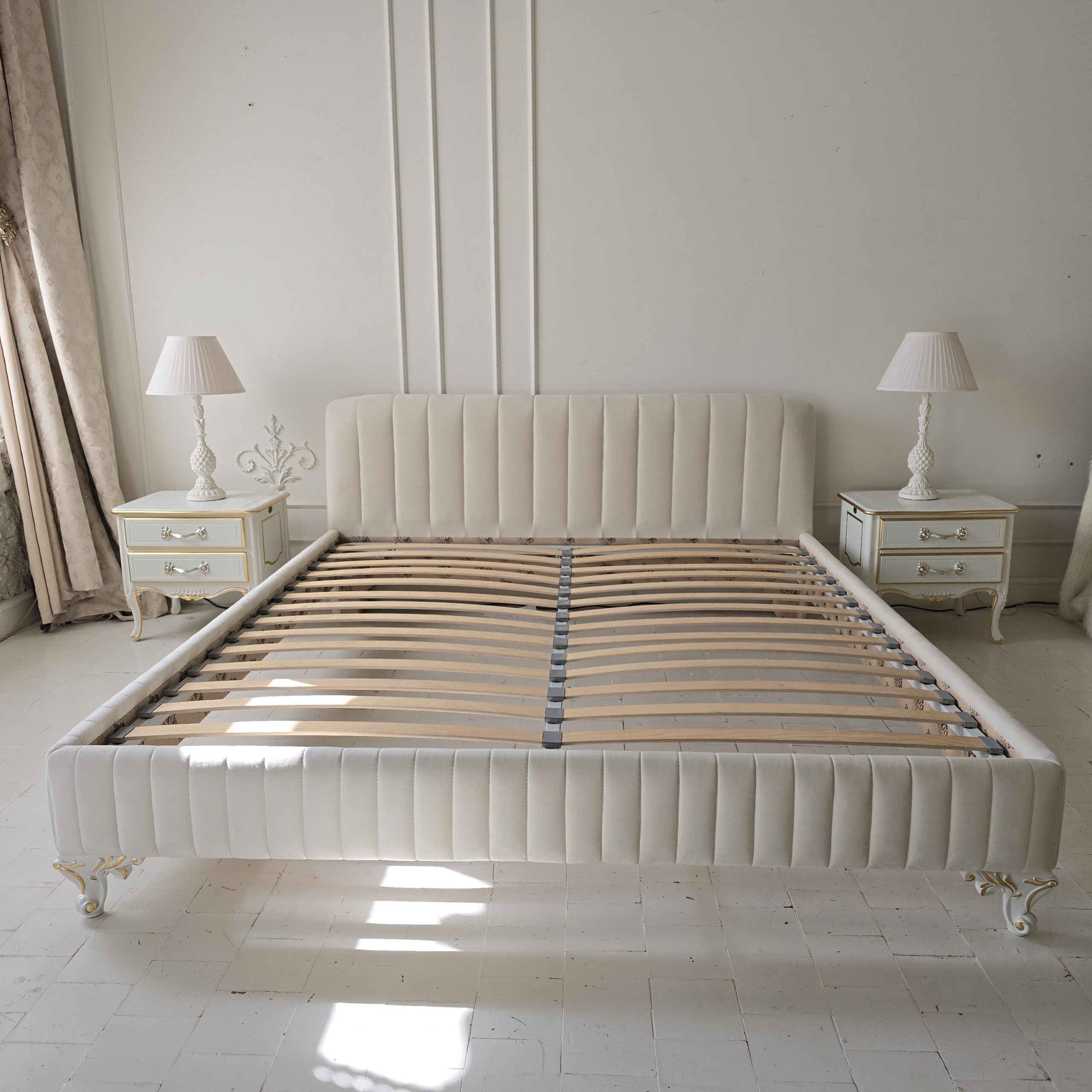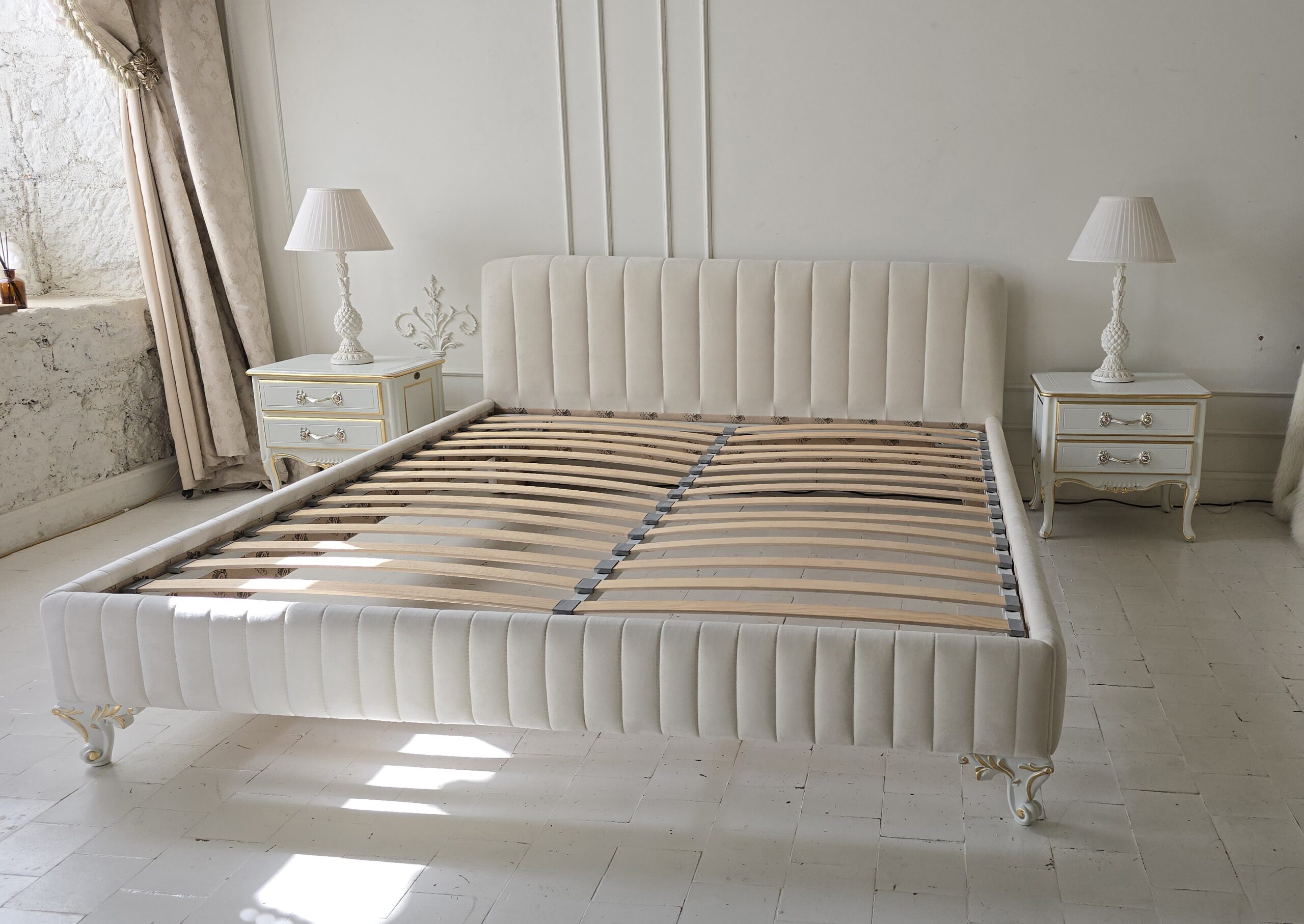 Цвет Бежевый Размеры возможен любой габарит Стиль Американская буржуазность, Английский стиль, Классический Категория товара Кровати Комната Спальня Наличие товара изготовление 45 раб.дней Особенности 160*200, 180*200, без ящиков, изготовление в любом цвете, изготовление по вашим размерам, с мягким изголовьем, требуется сборка -