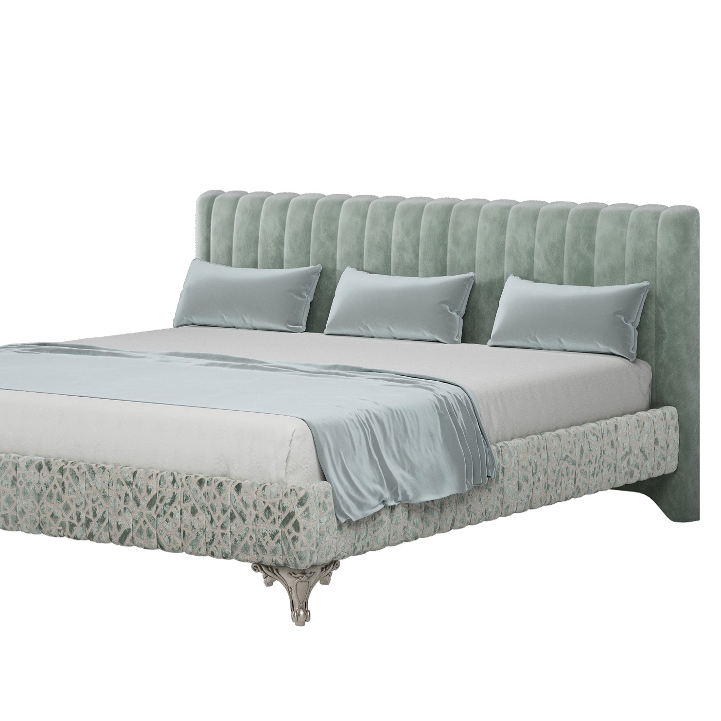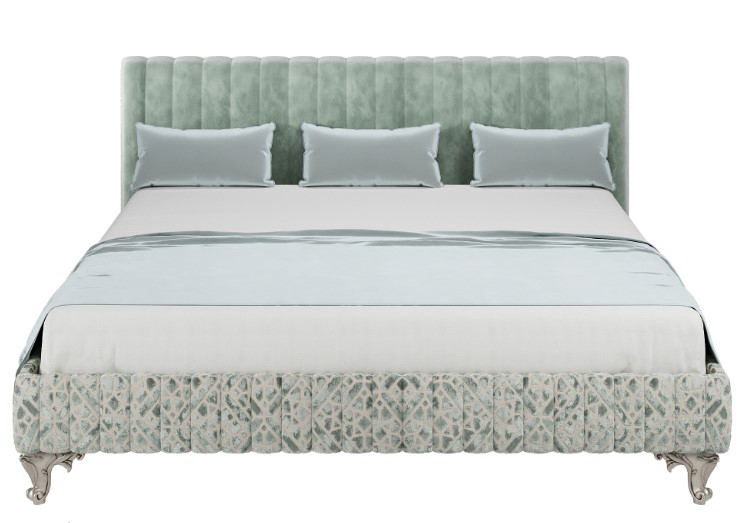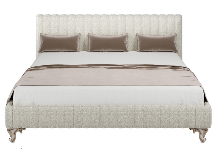 - Опциональное усиление архитектоники: Базовая модель обладает солидным характером. Придать ей еще более выразительный, «воздушный» силуэт можно с помощью опции фигурного изножья на высоких ножках (доп. плата 23 000 руб.). Этот элемент визуально приподнимает конструкцию, добавляет ей легкости и завершенности.