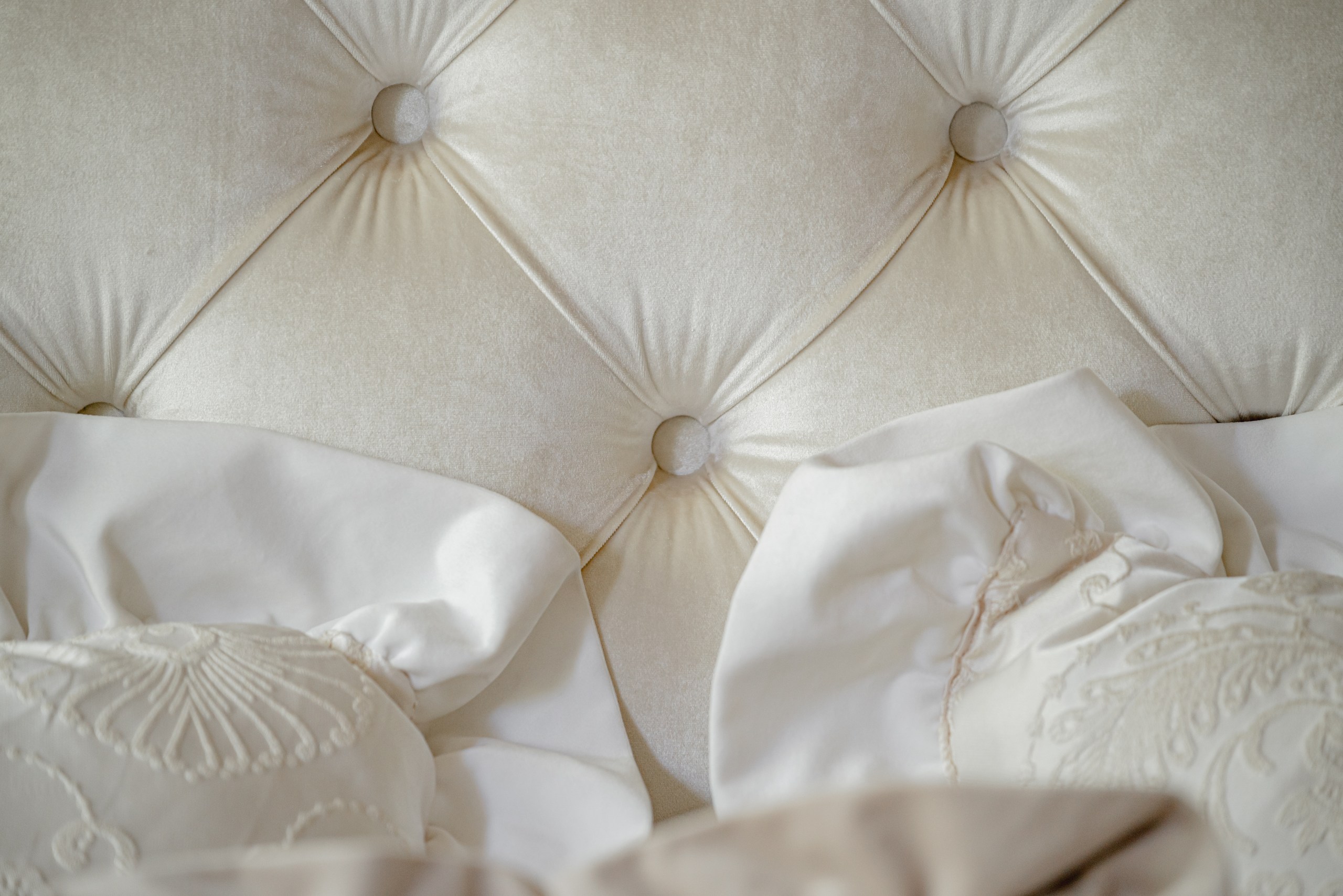 - Каретная стяжка на изголовье (доп. плата 14 000 руб.) — добавляет мягкую текстуру и делает образ более уютным и традиционным.