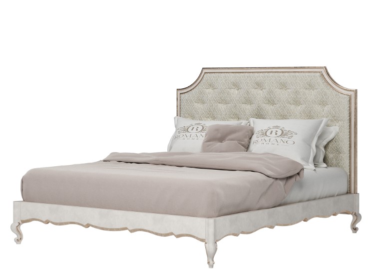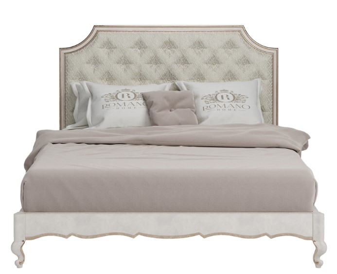 - Фигурное изножье на высоких ножках (доп. плата 23 000 руб.) — придает кровати более легкий, изящный и завершенный силуэт, визуально «приподнимая» ее и добавляя ноту классической элегантности.