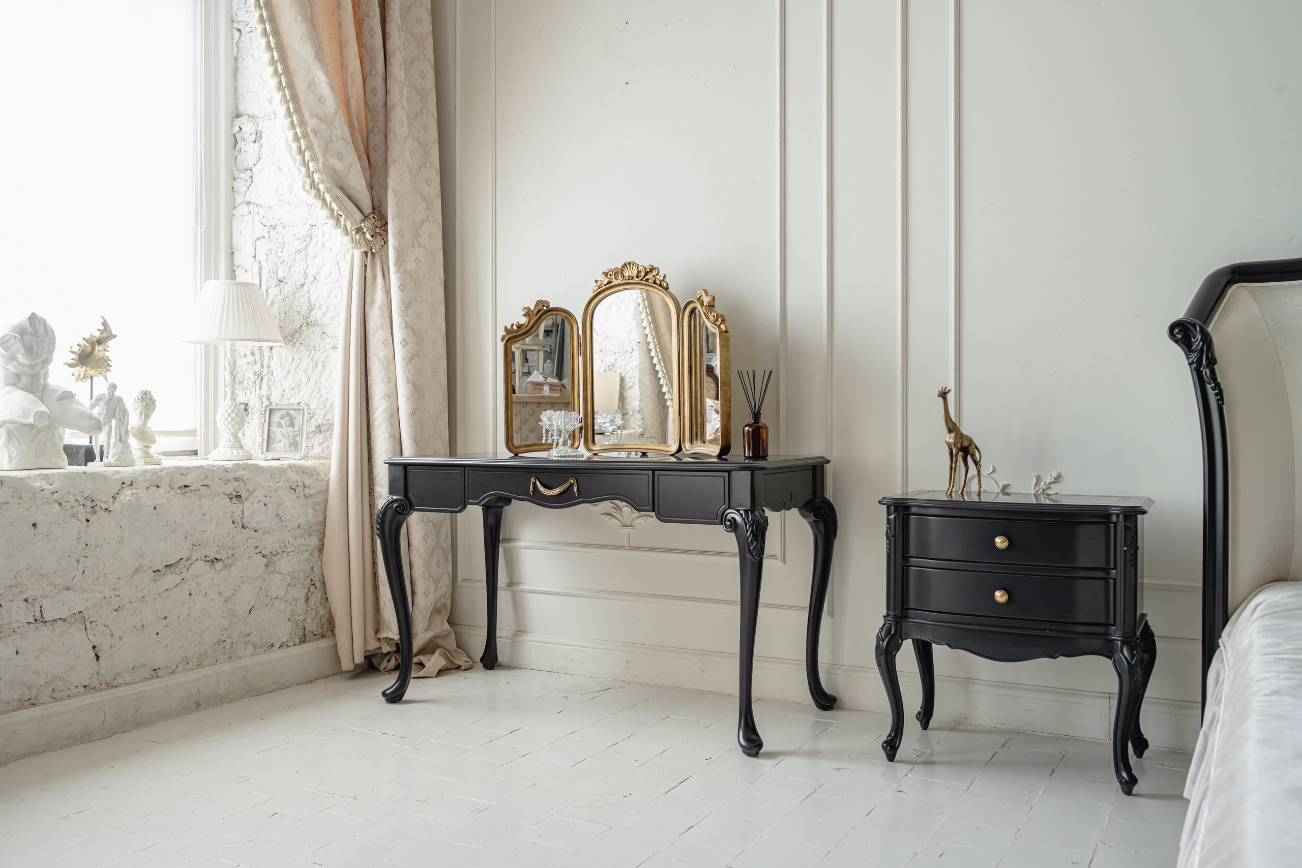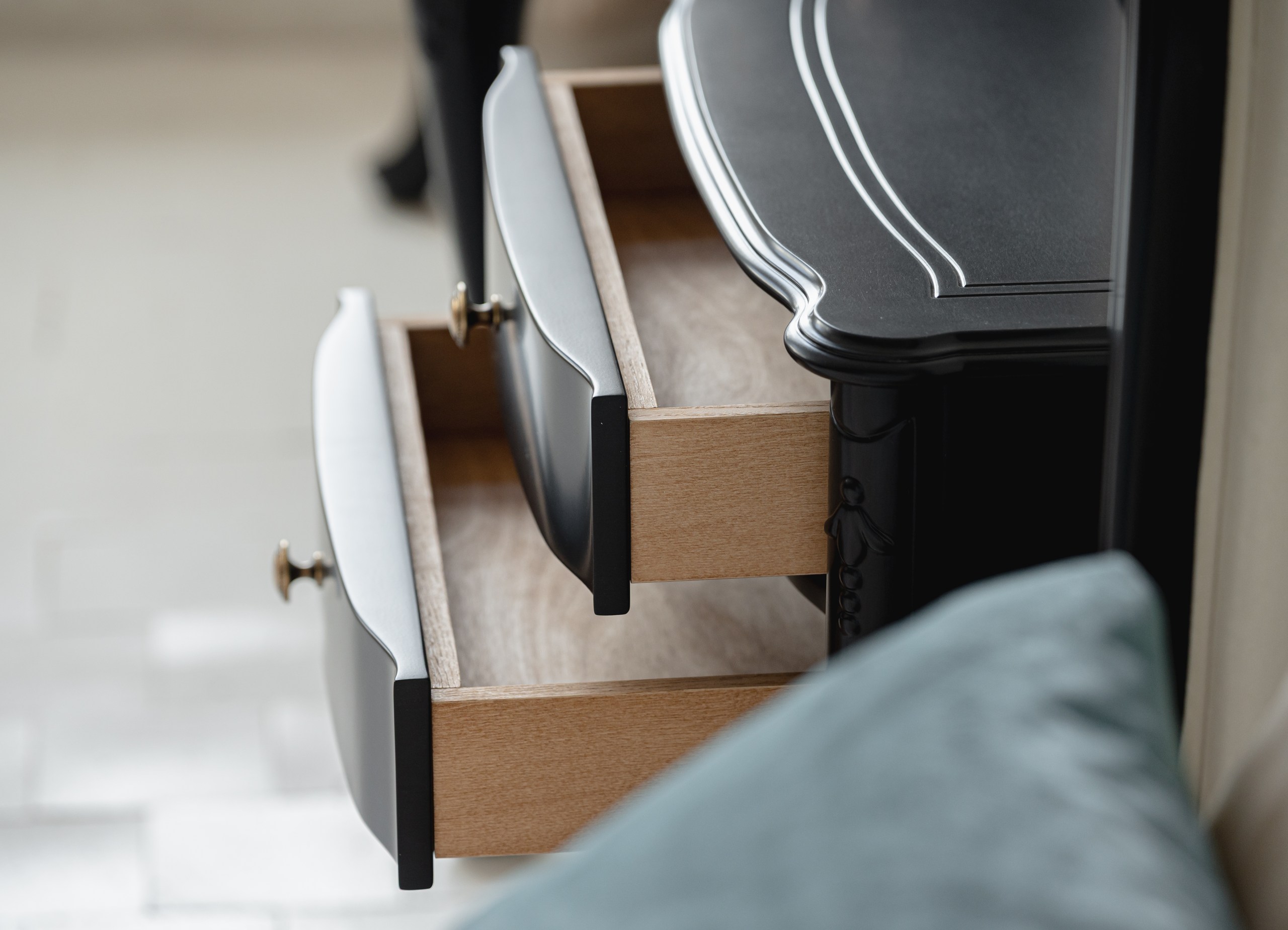 - Богатство выбора в отделке. На идеально ровной поверхности игра цвета и текстуры проявляется максимально ярко. Вы можете выбрать любой цвет из палитры итальянских красок — от глубоких матовых оттенков до светлых, отражающих свет. Листовая поталь (золото, серебро) может быть использована для тонкой окантовки или акцента на ножках, добавляя сдержанный блеск.