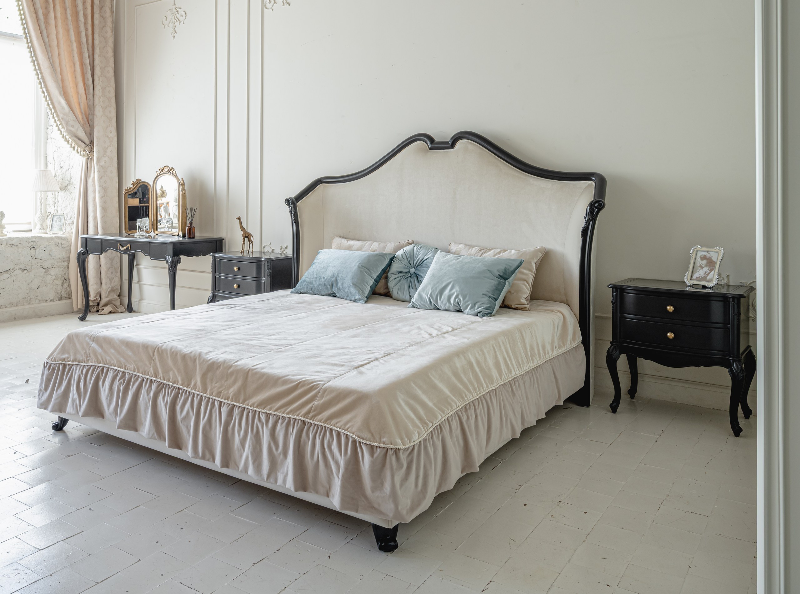 — Фигурное изножье на высоких ножках: 23 000 руб.Области применения: Просторная спальня как личный курорт