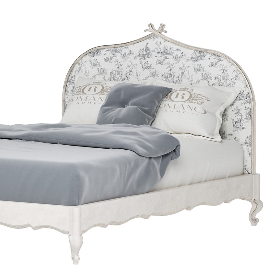 - Свобода в выборе цвета и отделки дерева. Каркас и ажурное изголовье могут быть окрашены в любой цвет из палитры итальянских красок — от воздушных белых и серых оттенков до глубоких благородных тонов. Доступна также деликатная отделка золотой или серебряной поталью.