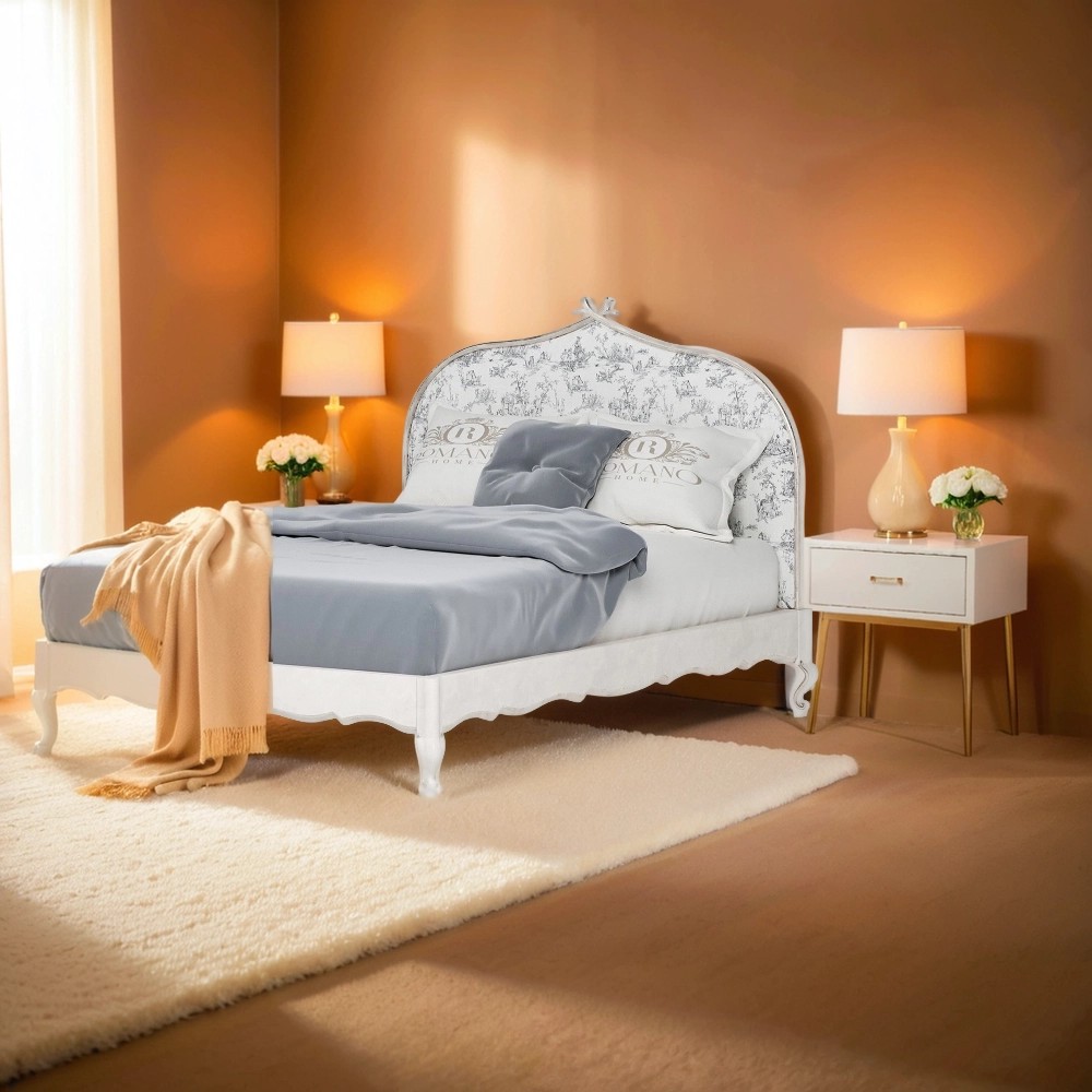 Материал изделия: Каркас — многослойное березовое дерево. Ножки и орнамент изголовья — массив дерева.