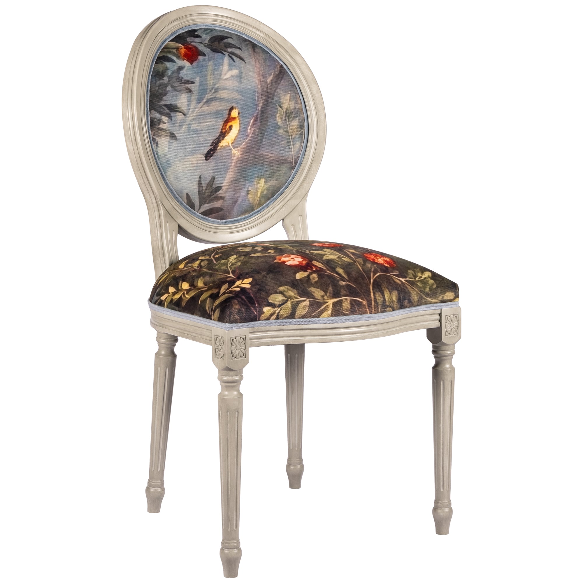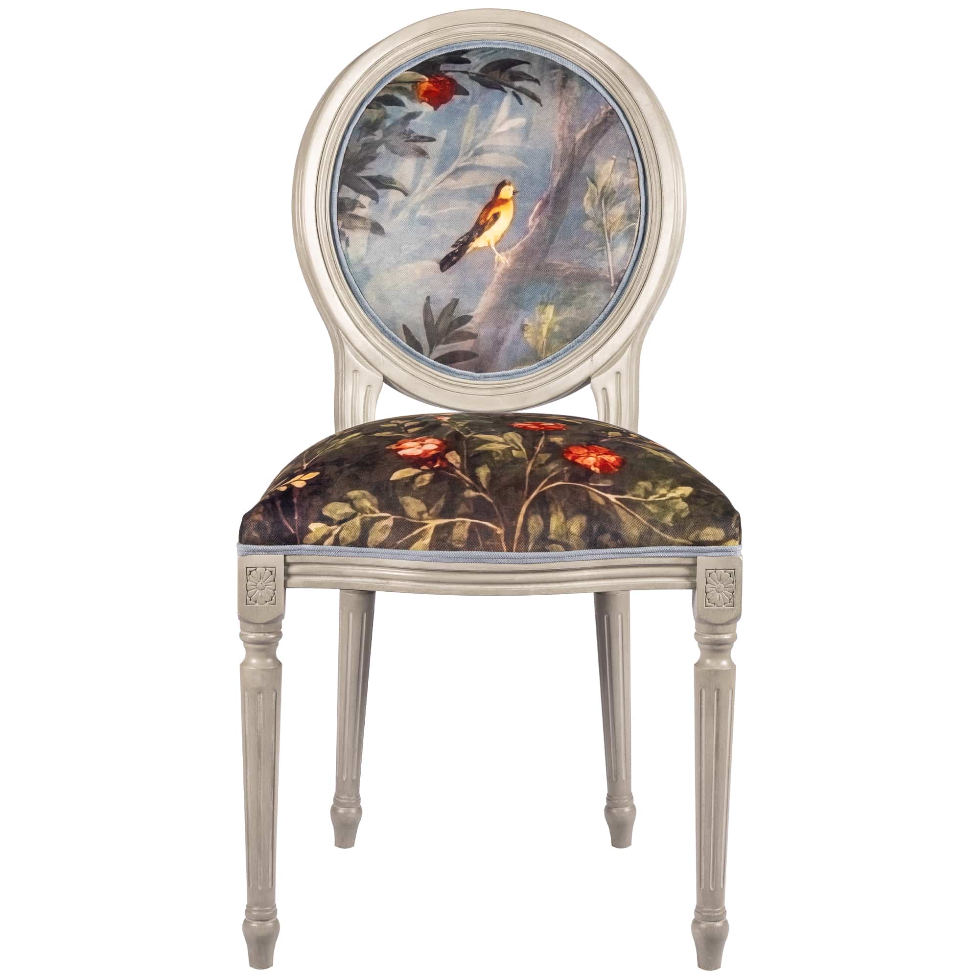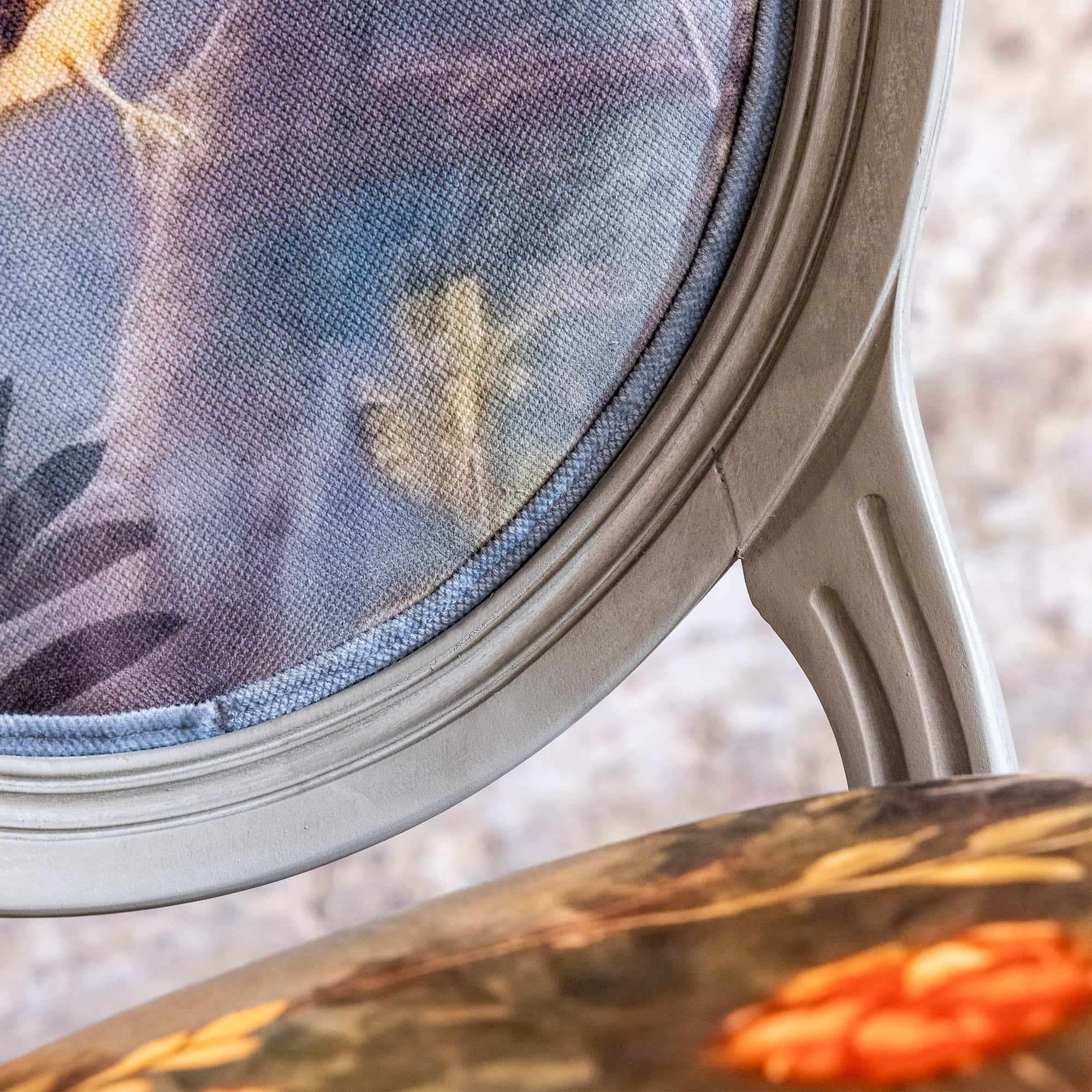 В основе дизайна коллекции – фрески виллы Ливии, жены императора Августа, датированные 30-20 гг. до нашей эры. Стул из коллекции «Вилла Ливия» словно декорация из райского сада, наполненного весенними цветами, летними фруктами и певчими птицами – вызывает полное восхищение! Создается ощущение сиюминутности происходящего.