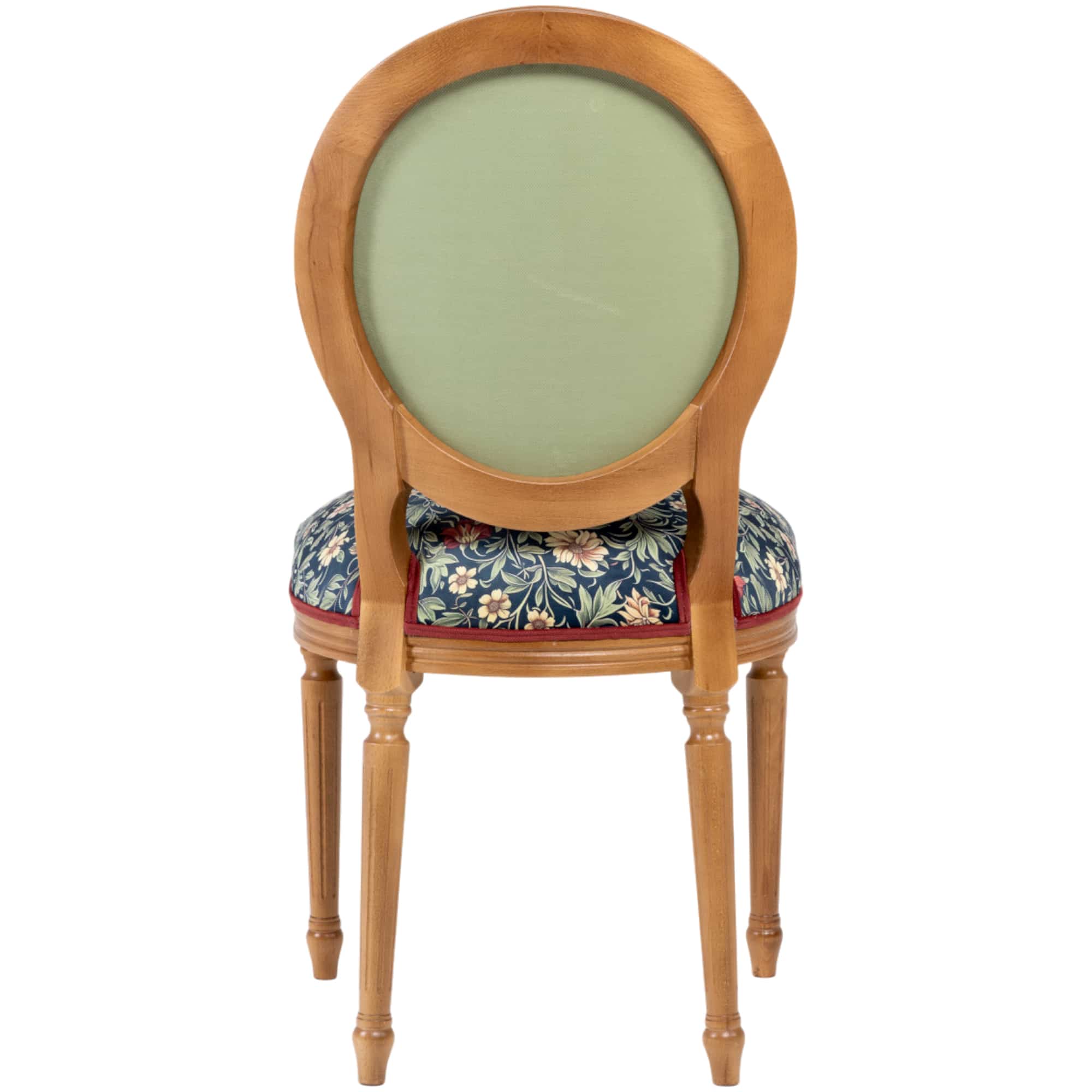 Задняя часть спинки стула имеет природный зеленый цвет, что еще больше подчеркивает его связь с природой. Кант стула вторит красным цветам на сиденье, создавая гармоничный и завершенный образ.
