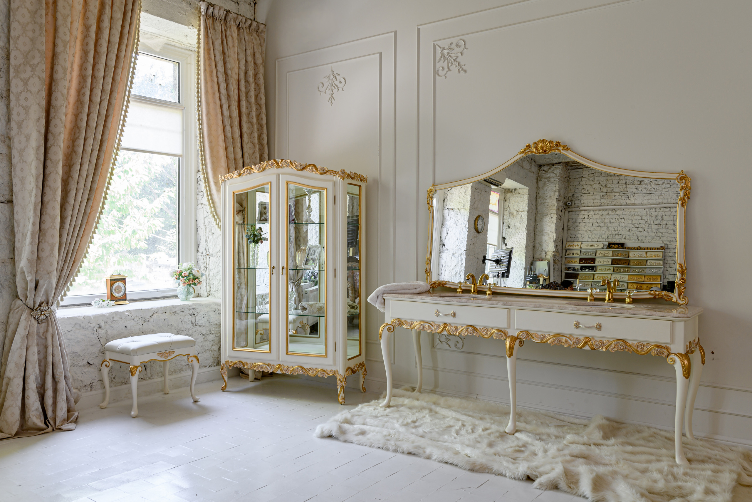 Цвет Золотой, Белый Размеры 208*84*55 Стиль Классический Категория товара Консоли Комната Ванная Наличие товара под заказ Особенности изготовление в любом цвете, изготовление по вашим размерам, требуется сборка -