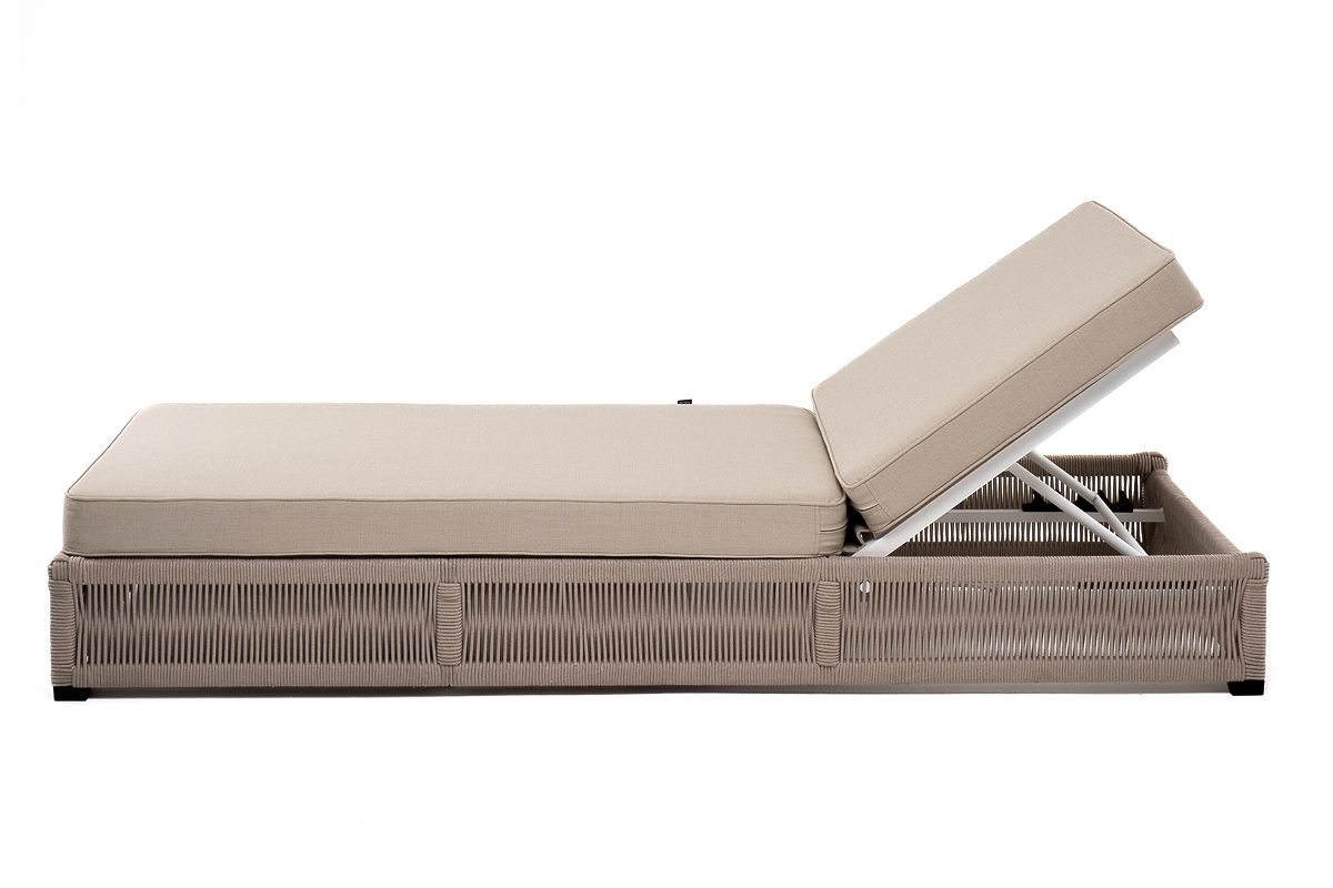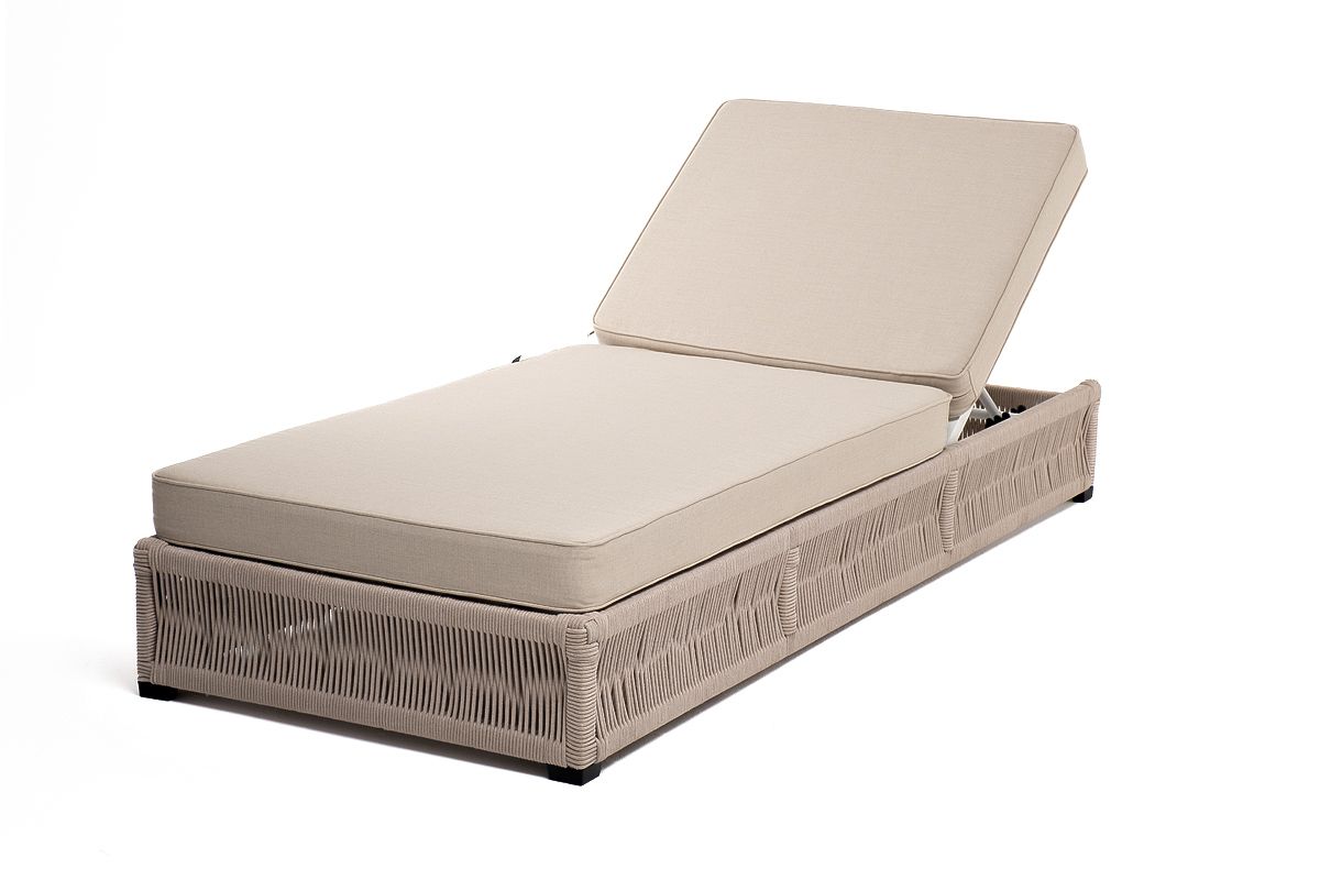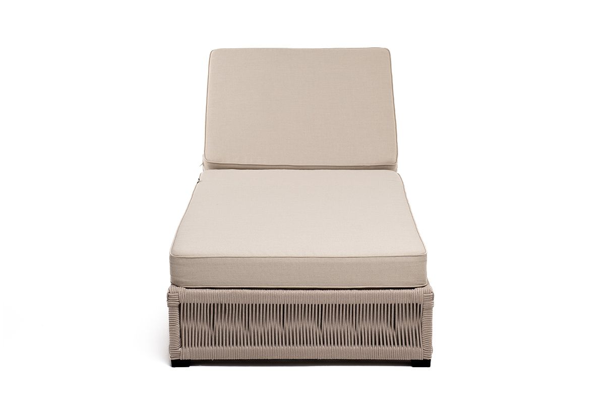 "Ривьера" плетеный шезлонг из роупа бежевого оттенка прекрасно дополнит пространство для отдыха на открытом воздухе.