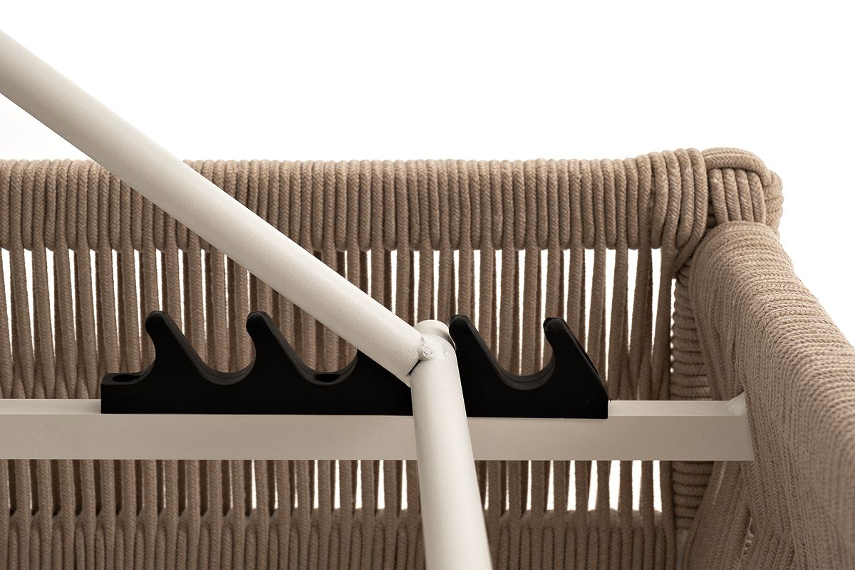 Каркас вручную оплетен бежевым роупом - эластичными синтетическими лентами из высокопрочных полиэфирных волокон.