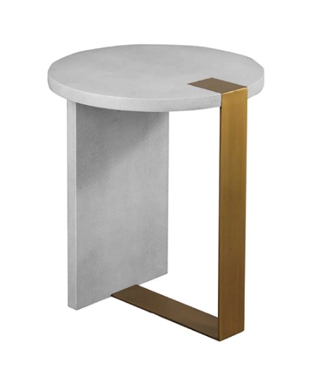 Серый приставной столик “Дидье”, сочетает в себе стиль ар-деко с практичностью раннего модернизма, дополняется такими деталями, как отделка из шагреневой кожи с точным воспроизведением текстуры и рисунка натуральной шкуры ската и металлическая вставка в цветовой гамме латунь.