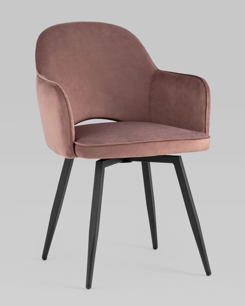 Прочные ножки, покрытые краской в черном цвете, выполнены из металла, поэтому обеспечивают хорошую устойчивость и делают стул оригинальным. Дополнительная функция вращения сиденья обеспечивает максимальный комфорт. Высота подлокотников от пола 66,5 см.