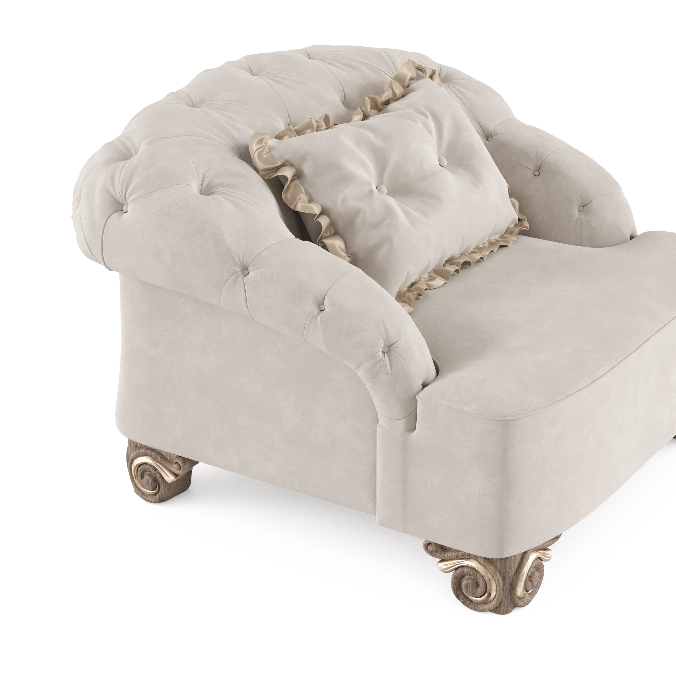 Это кресло создается по индивидуальному заказу, что позволяет адаптировать не только его размеры под ваше телосложение и пространство, но и выбрать идеальную комбинацию материалов для обивки, которые подчеркнут его мягкую эстетику.