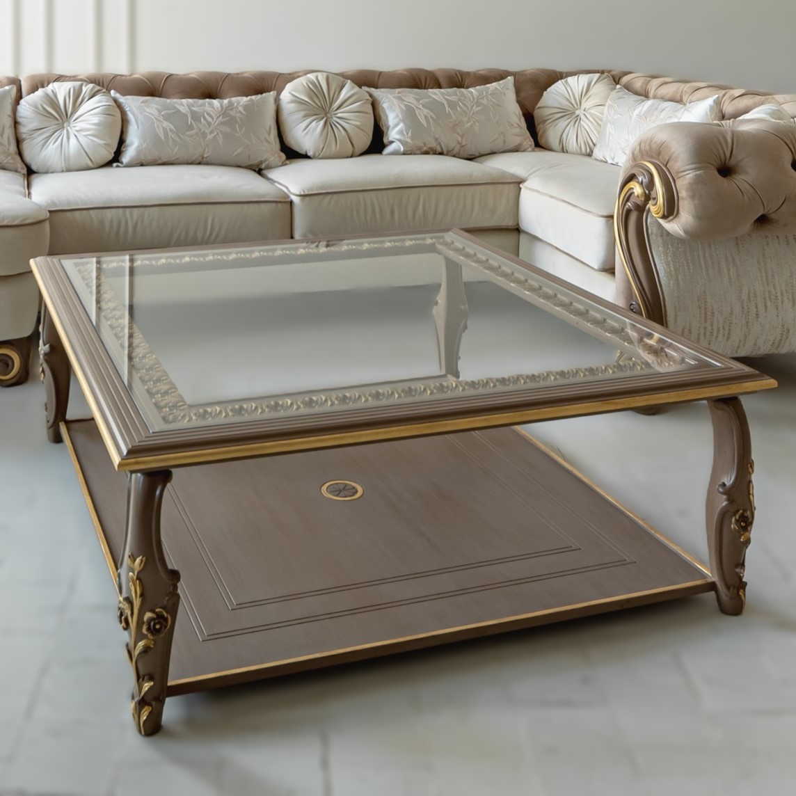 Цвет Золотой, Коричневый Размеры ш 120, в 45, г 120 Стиль Классический Категория товара Журнальные столы Комната Гостиная Наличие товара под заказ Особенности изготовление в любом цвете, изготовление по вашим размерам, квадратный -