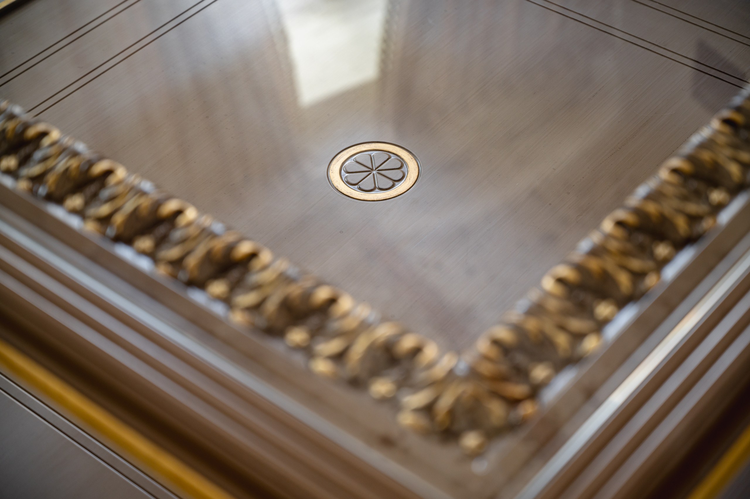 Срок изготовления — 40 рабочих дней. Увеличенный срок обусловлен сложностью работы с большими массивами дерева: от длительной акклиматизации и обработки заготовок до многослойной ручной отделки, требующей времени на просушку каждого слоя. Это необходимое условие для создания предмета высочайшего качества.