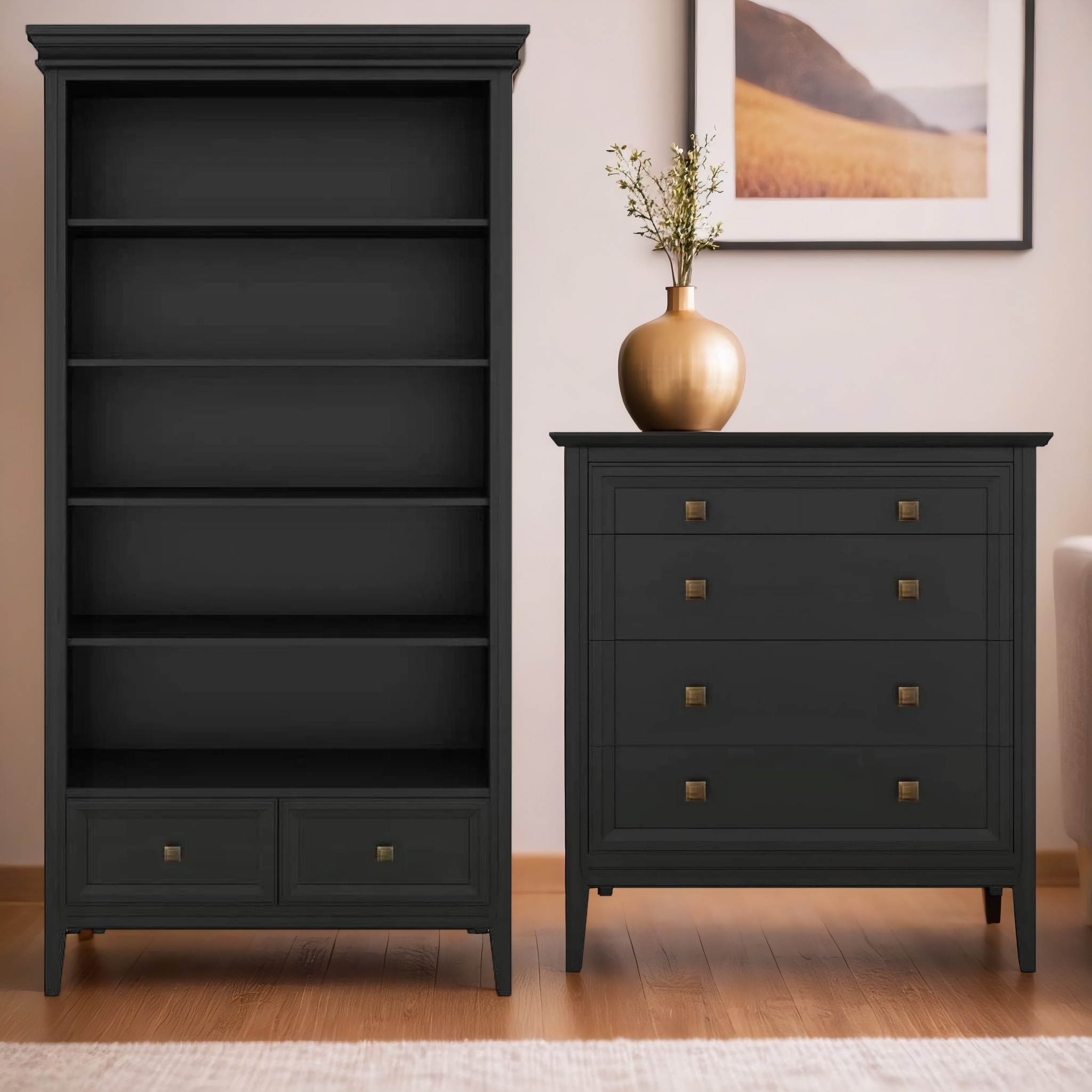 Цвет Черный Размеры 107x42x206 Стиль Американская буржуазность, Современный Категория товара Стеллажи Комната Гостиная Наличие товара изготовление 45 раб.дней Особенности с ящиками, требуется сборка -